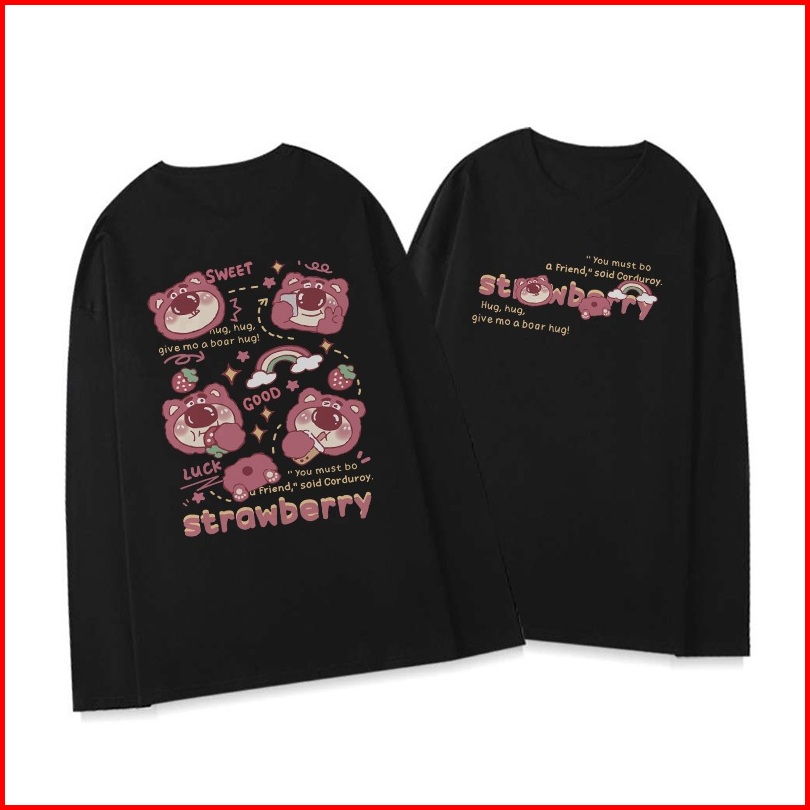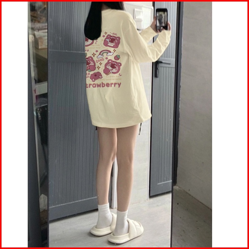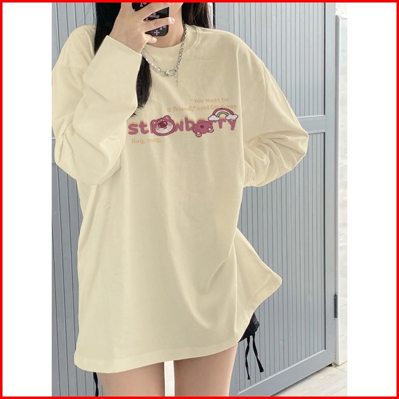 Kaos Oversize Lengan Panjang Wanita Beruang Stroberi Yang Lucu Korean Style Baju Kaos Lengan Panjang Wanita Terbaru Keki