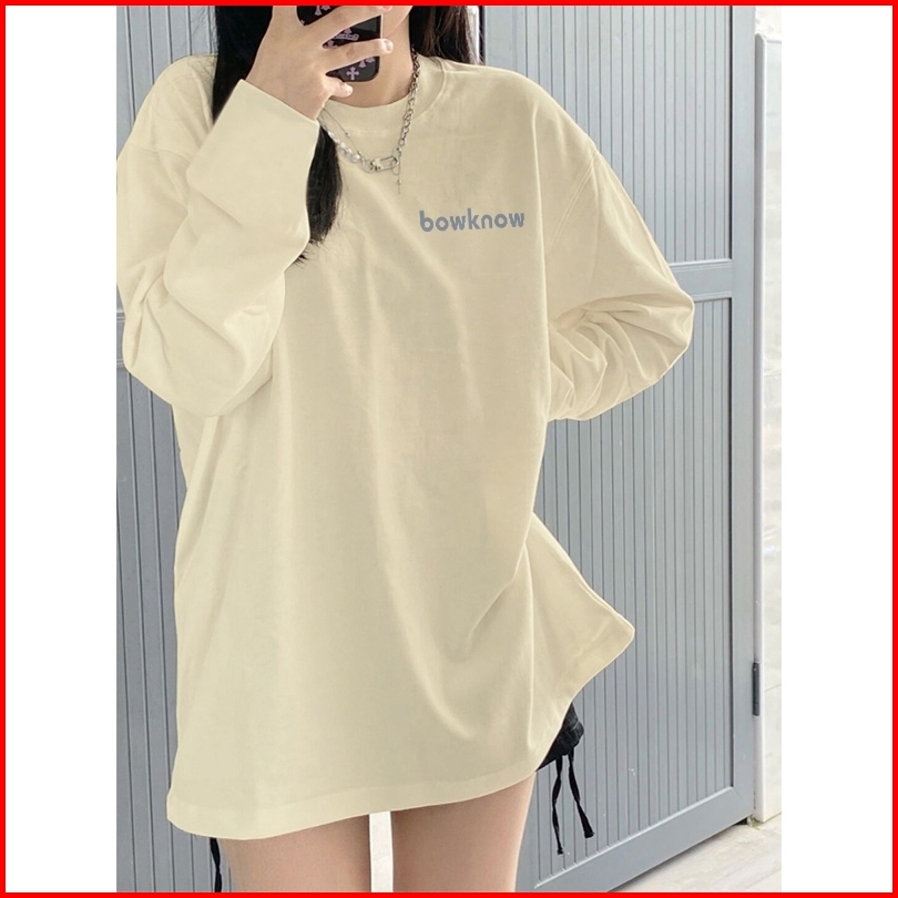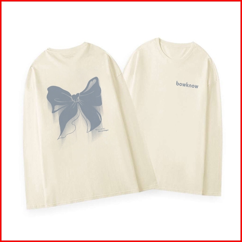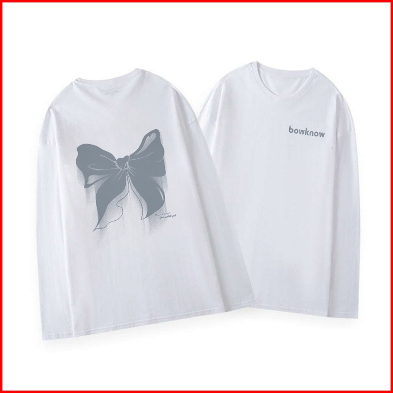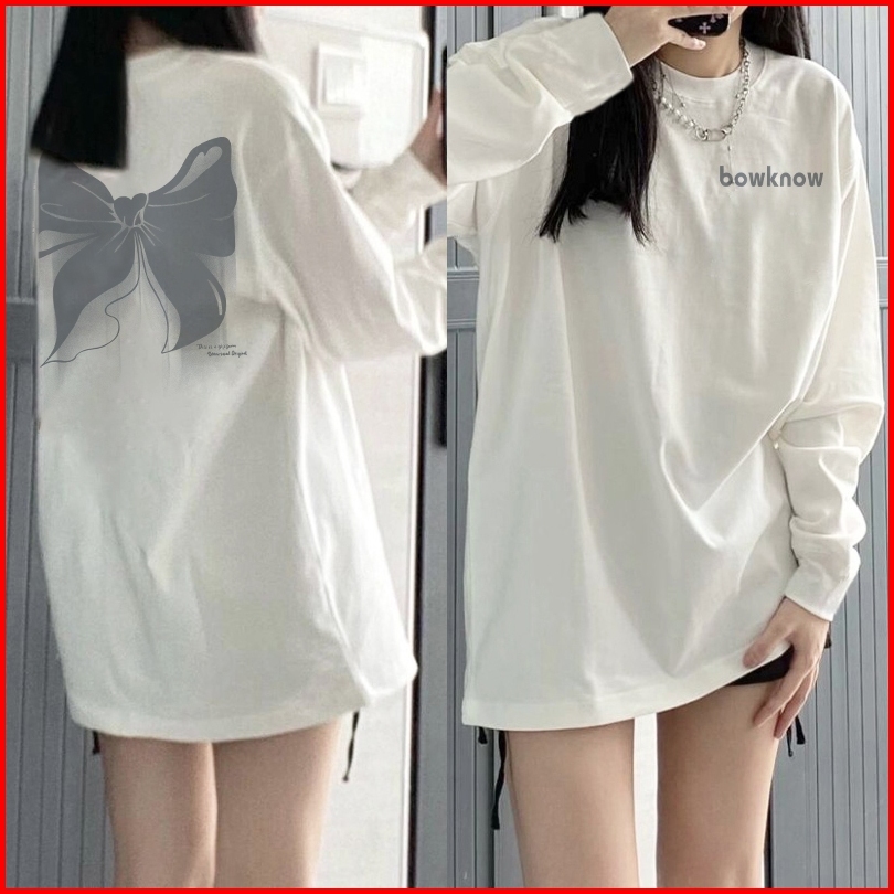 Kaos Oversize Lengan Panjang Wanita Cetakan Cetakan Pita Abu-abu Baju Kaos Lengan Panjang Wanita Terbaru Kekinian Baju K