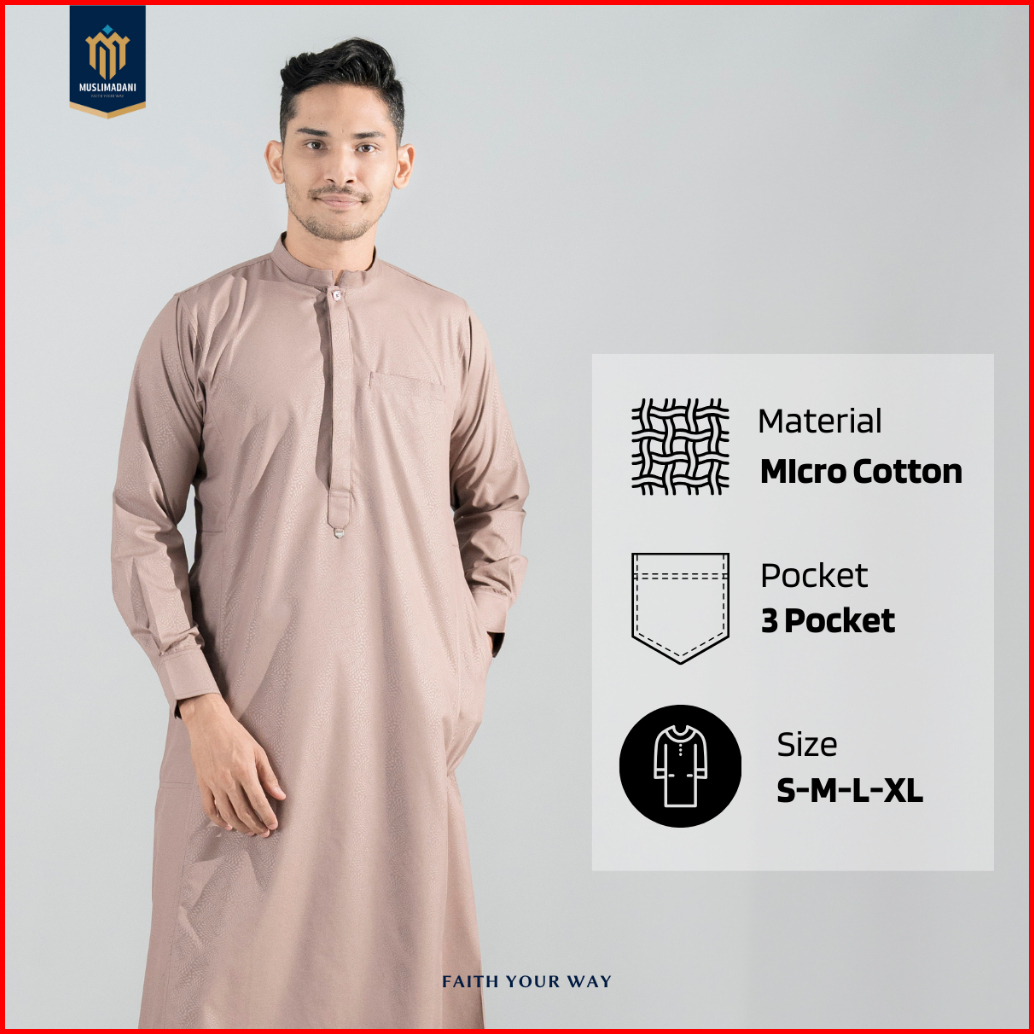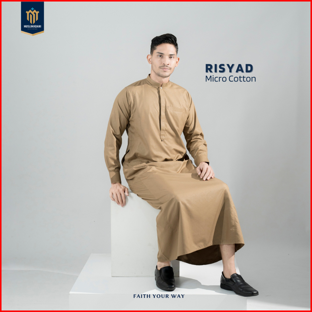 Muslimadani Jubah Dewasa Risyad Gamis Pria Lengan Panjang Pakaian Muslim Pria