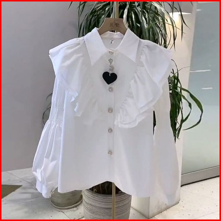 Sse Olshop - Cherry Kemeja Putih Wanita Korean Style Baju Atasan Wanita Terbaru Rayon Twill Adem