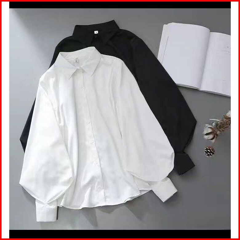 Sse Olshop - Kemeja Wanita Basic Hitam Putih Rayon Twill Baju Atasan Wanita Terbaru