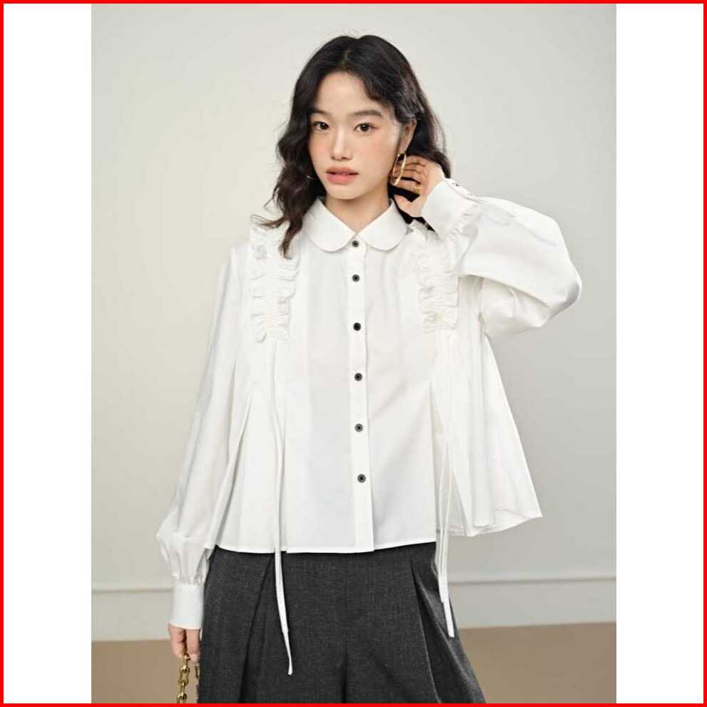 Sse Olshop - Ayara Kemeja Wanita Serut Pundak Kemeja Putih Wanita Jumbo Baju Atasan Wanita Terbaru