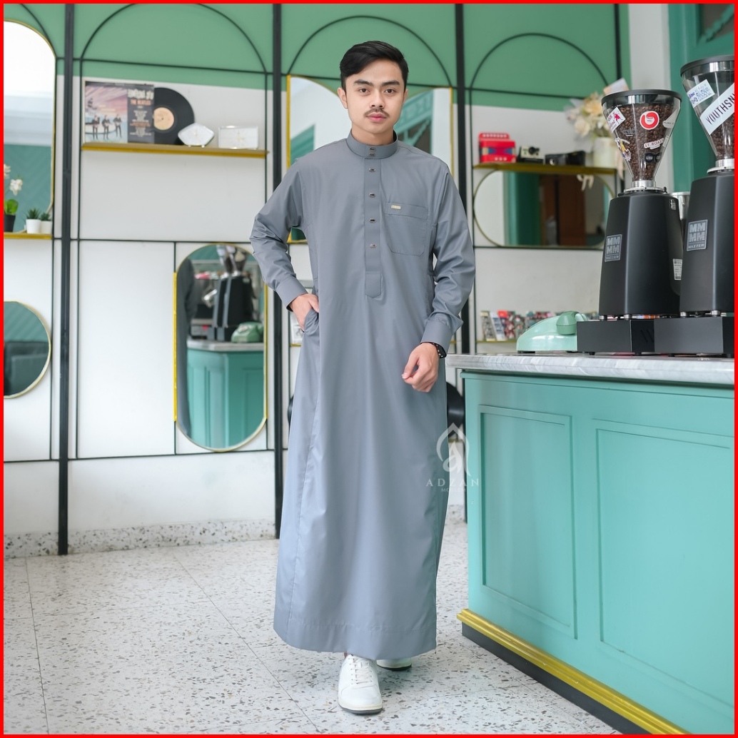 Adzan Moslem - Jubah Gamis Thobe Slimfit Pria Ismail Warna Putih