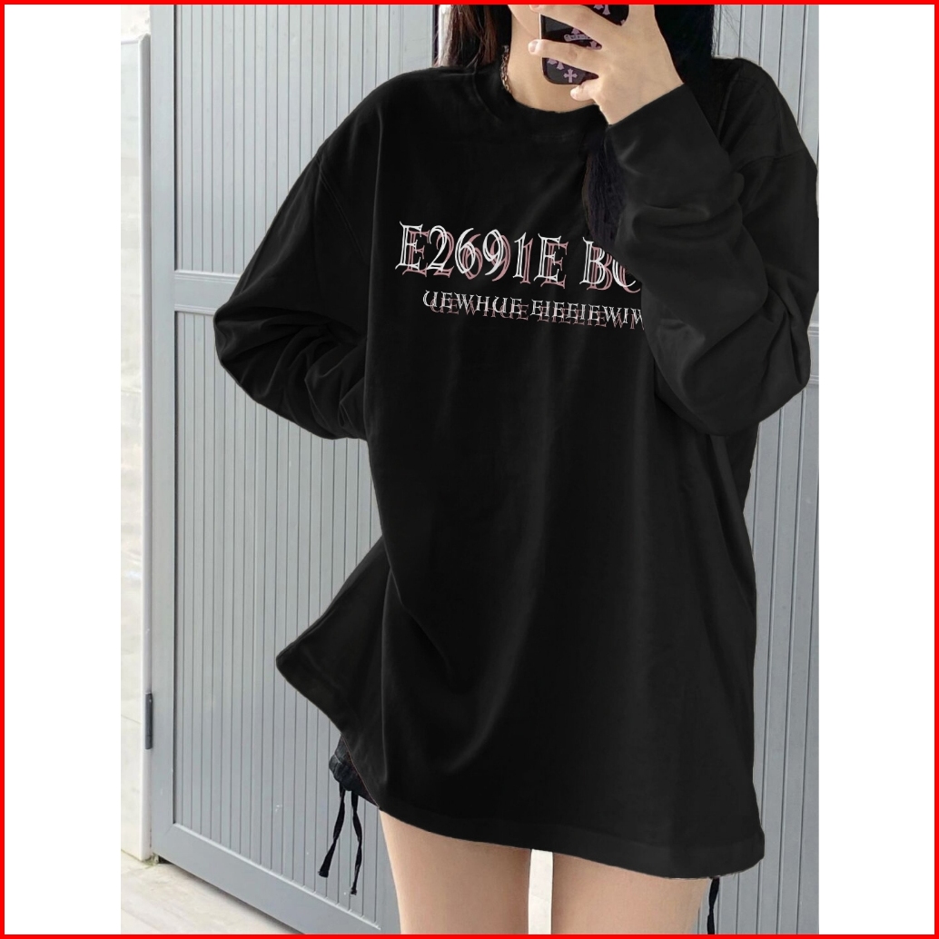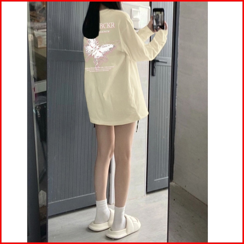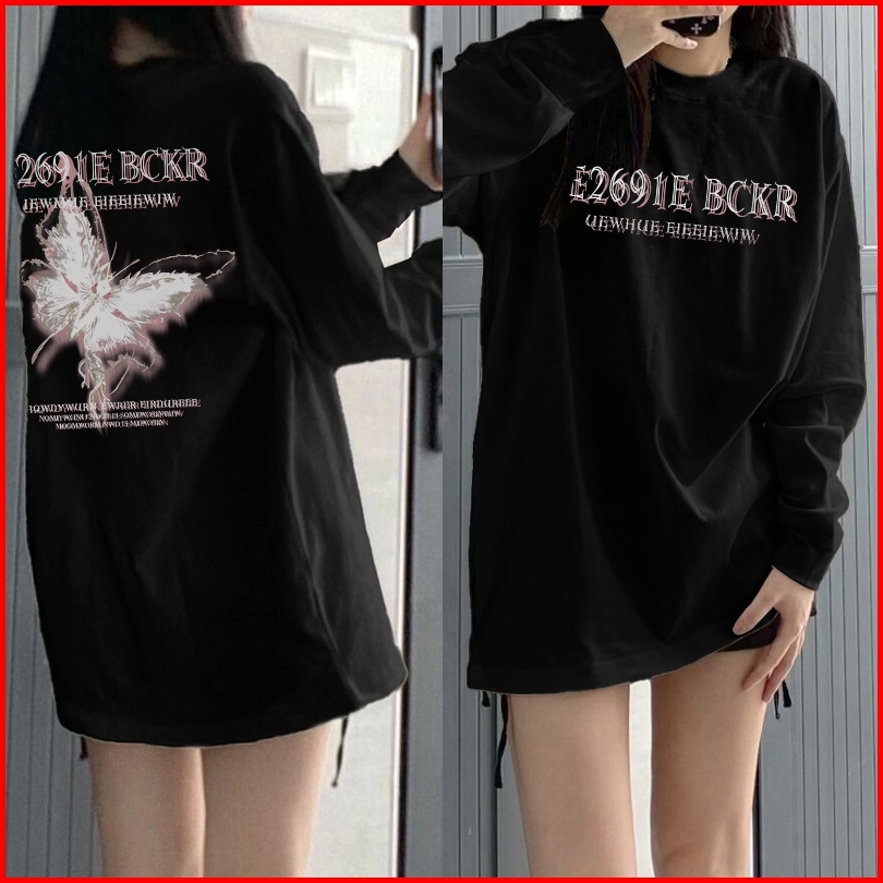 Kaos Oversize Lengan Panjang Wanita Cetakan Cetakan Kupu-kupu Vintage Baju Kaos Wanita Hitam Korea Lengan Panjang Baju W