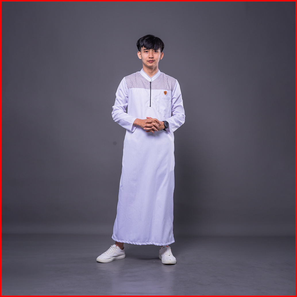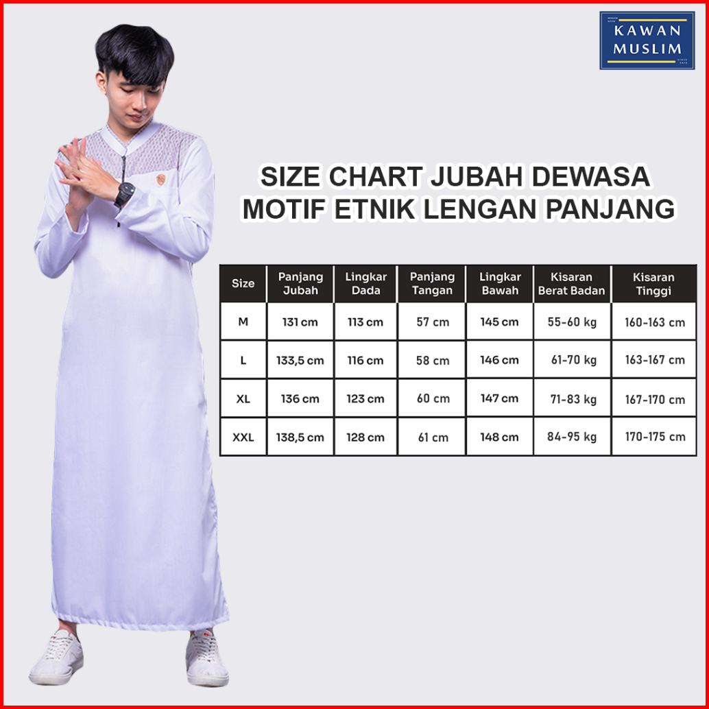 Kawan Muslim - Jubah Gamis Pria Dewasa Model Etnik Lengan Panjang Warna Putih Ukuran M Sampai Xxl
