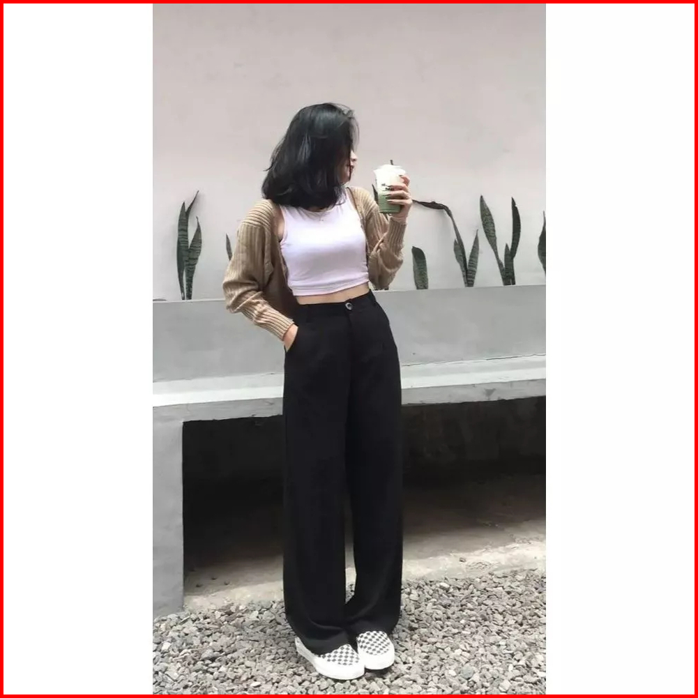 Dhsyfashion-sabiya Celana Kerja Formal Kulot Wanita Highwaist Loose Pants Korean Style
