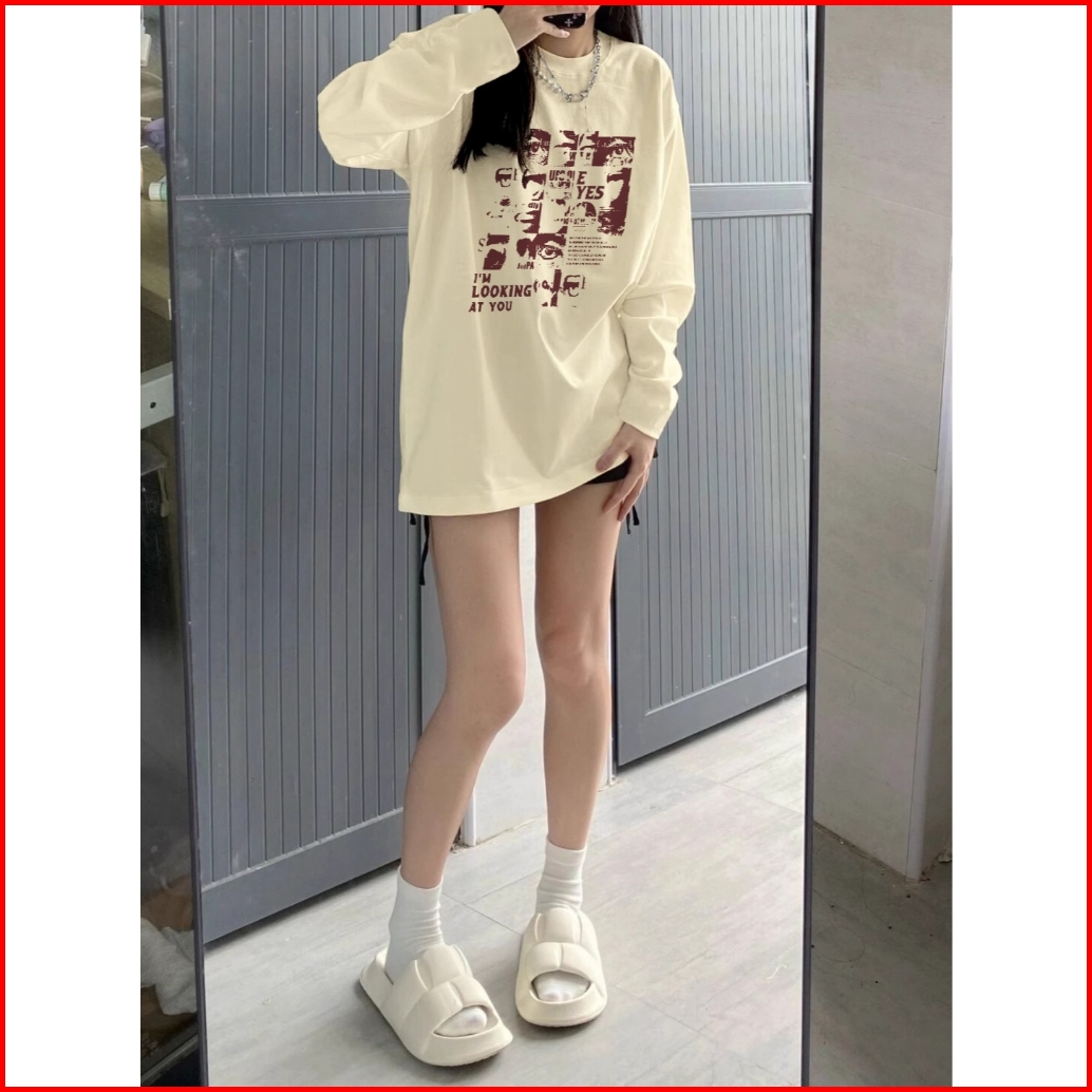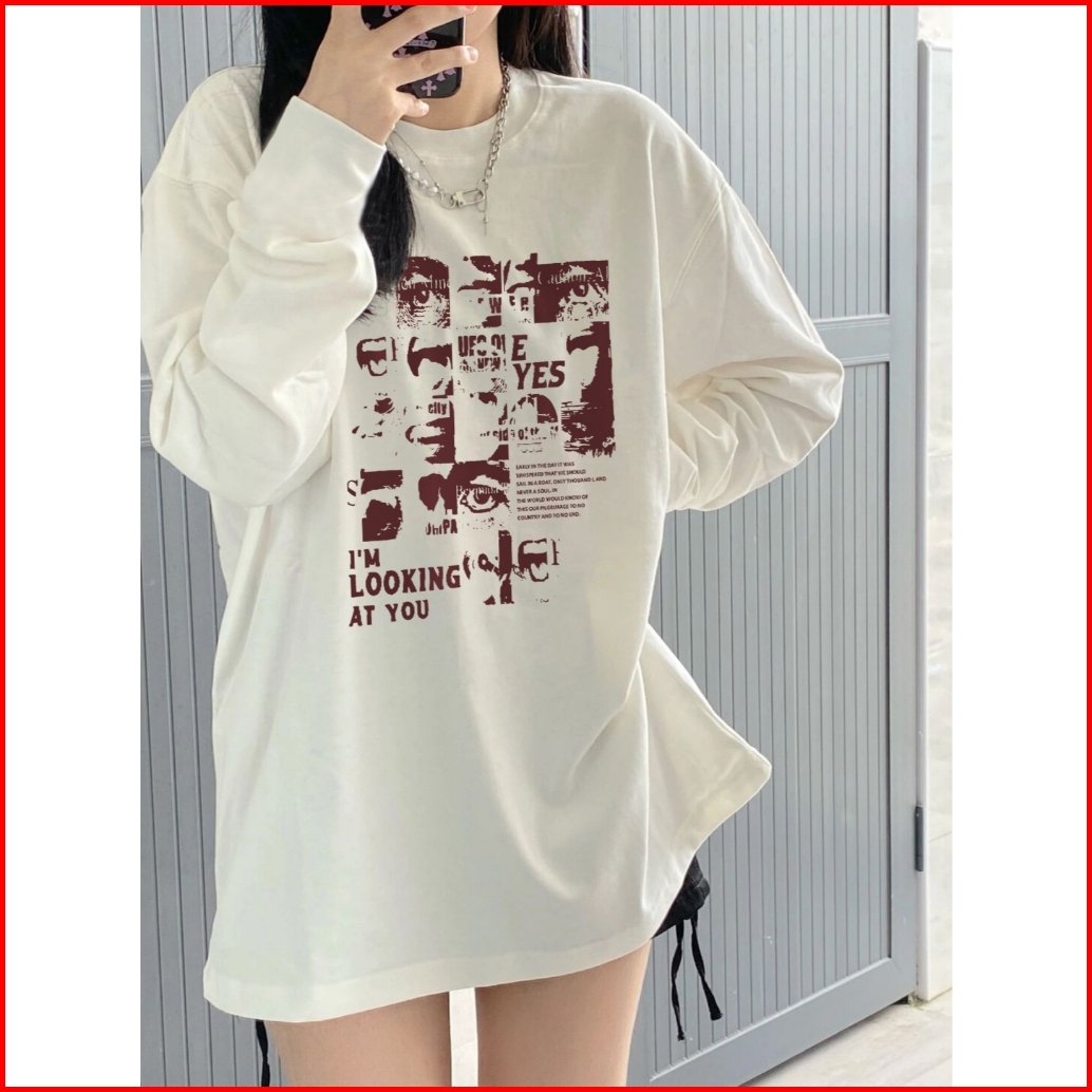 Kaos Oversize Lengan Panjang Wanita Cetakan Retro Eyes Baju Kaos Lengan Panjang Wanita Terbaru Kekinian Baju Kaos Wanita