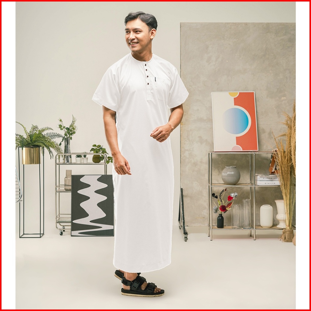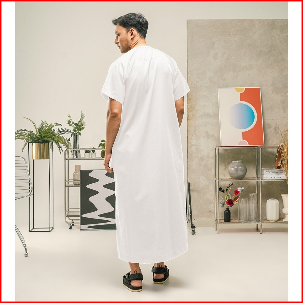 Khoirummah Jubah Musa Dewasa - Gamis Muslim Pria Dewasa - Jubah Polos Lengan Pendek - White
