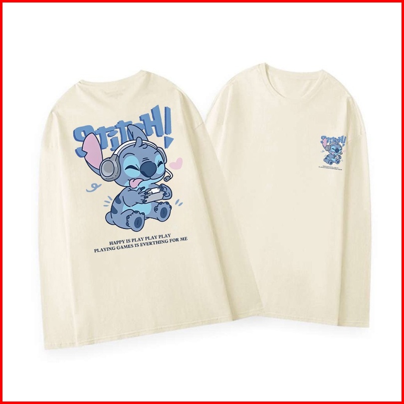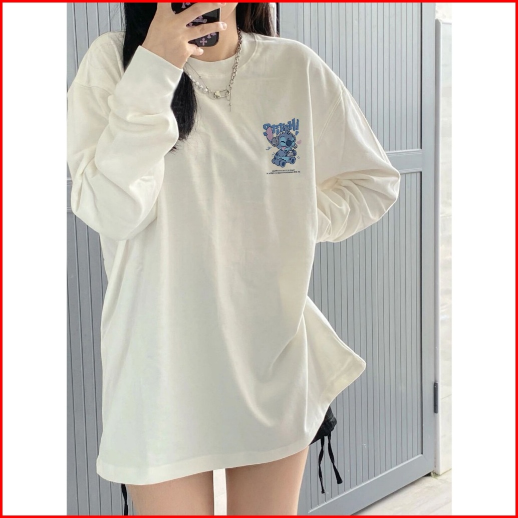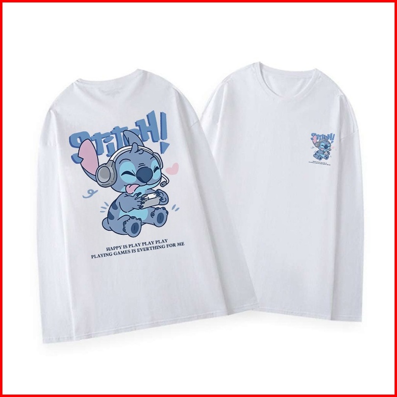 Kaos Oversize Lengan Panjang Wanita Cetakan Stitch Playing Games Baju Kaos Lengan Panjang Wanita Terbaru Kekinian Baju K