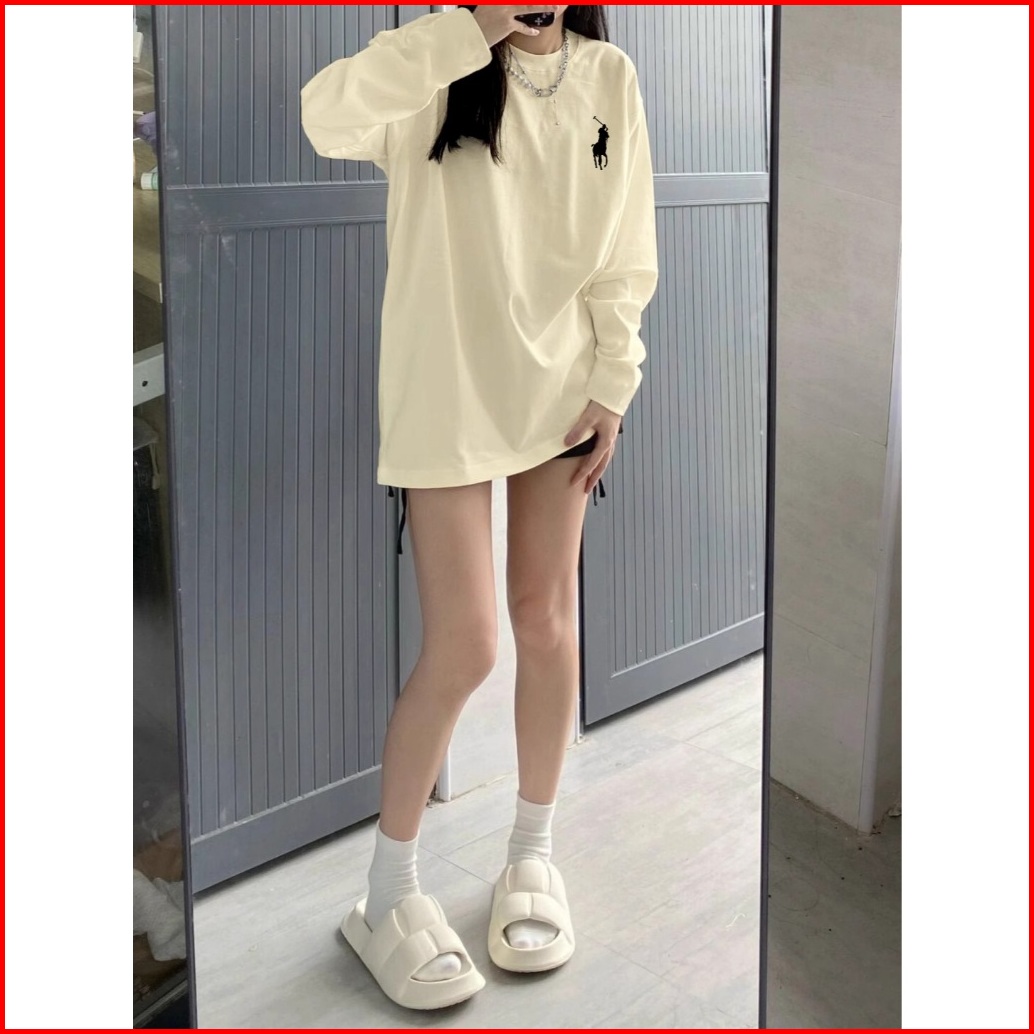 Kaos Oversize Lengan Panjang Wanita Cetakan Solid Color Simple Small Logo Baju Kaos Lengan Panjang Wanita Terbaru Kekini