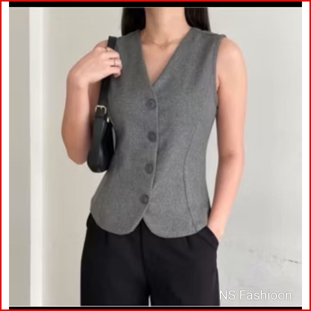 Aura Vest Rompi Kerja Wanita-atasan Wanita Kekinian Outer Basic-blazer Tanpa Lengan Korean Style