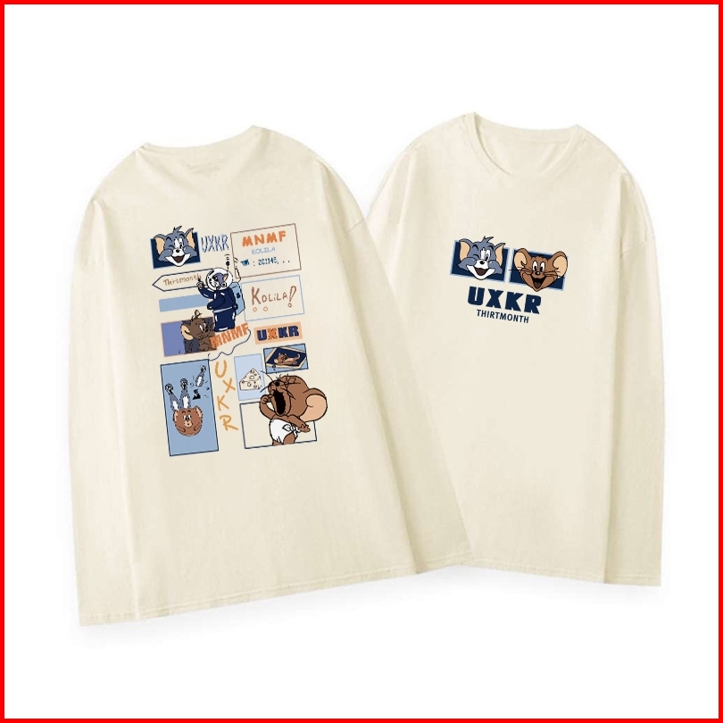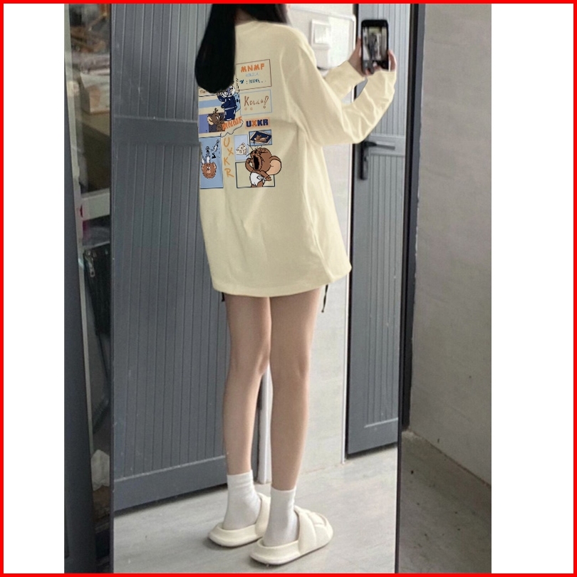 Kaos Oversize Lengan Panjang Wanita Cat And Mouse Baju Kaos Lengan Panjang Wanita Terbaru Kekinian Baju Kaos Wanita Puti