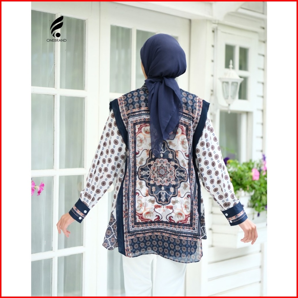 Onebrand Hijab Clara Sally Vest Ayesha Soft Babydoll Kemeja Vest Wanita Motif Lengan Panjang
