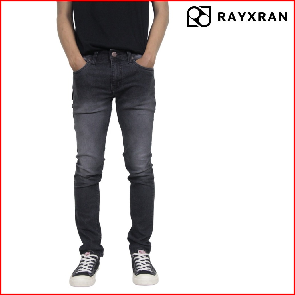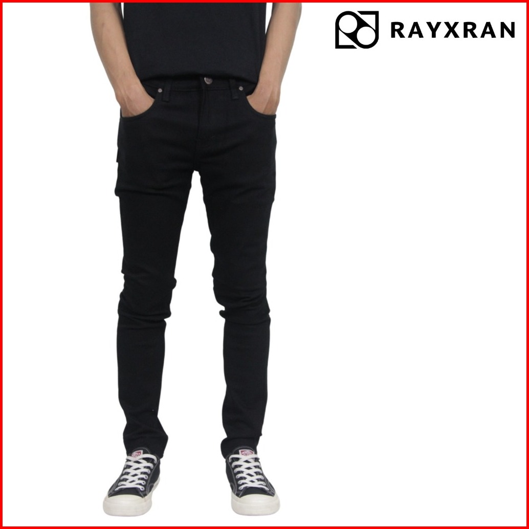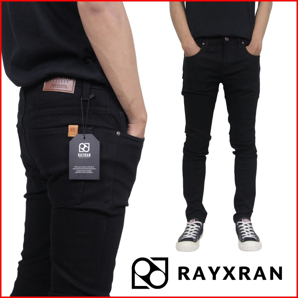 Rayxran Celana Jeans Panjang Pria Basic Full Black Slimfit Stretch