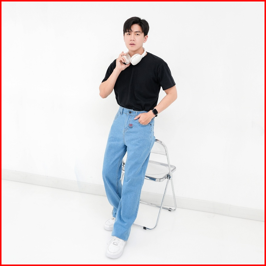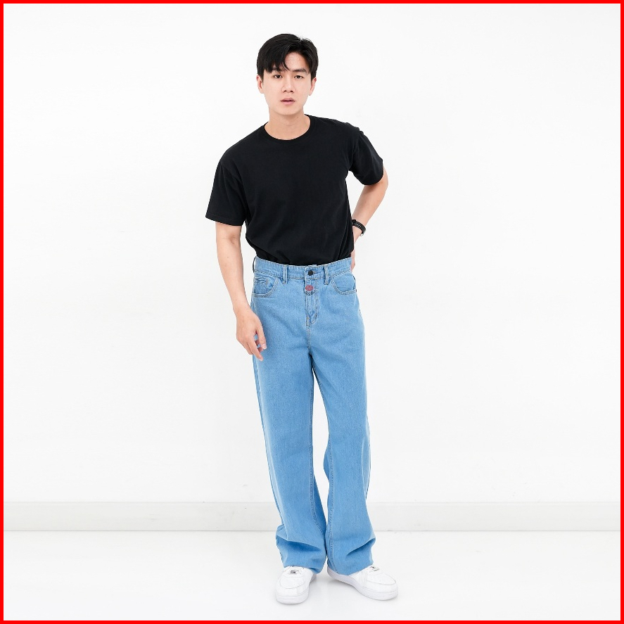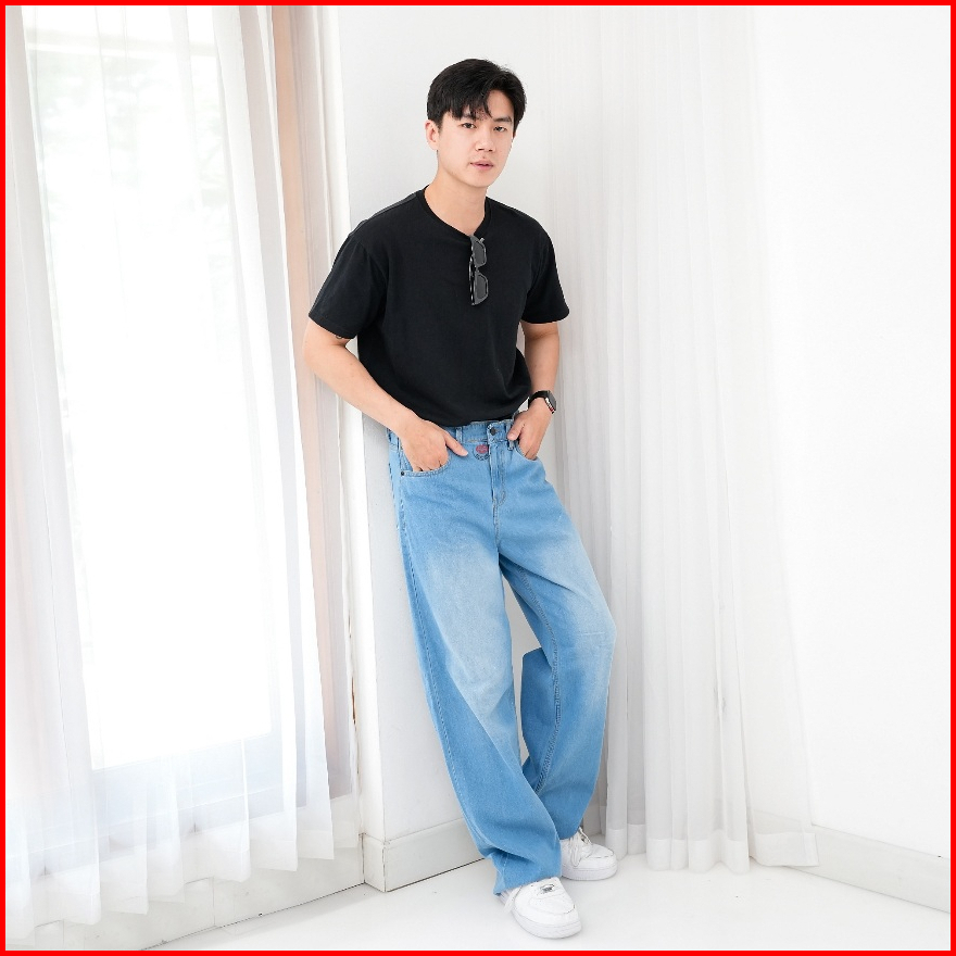 Nuber Loose Celana Panjang Jeans Pria Gabro Jeans Blue Navy Spray Snow