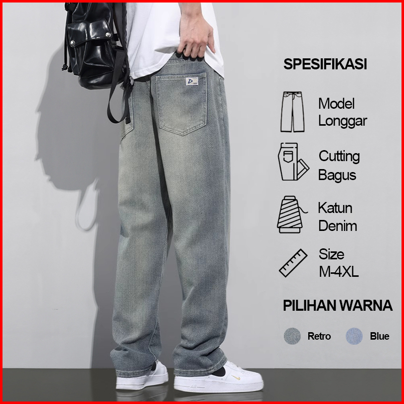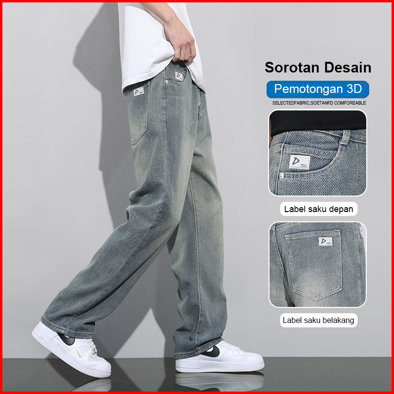 Suyboy Celana Jeans Pria Cowok Jeans Retro Reguler Denim Celana Panjang Diperpanjang Jeans Vintage