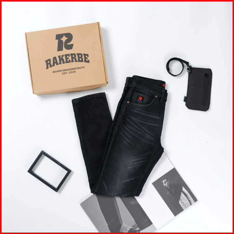 Rakerbe Celana Jeans Pria Slimfit Merah Panjang Cowok Blackjazz Aksen Selvedge