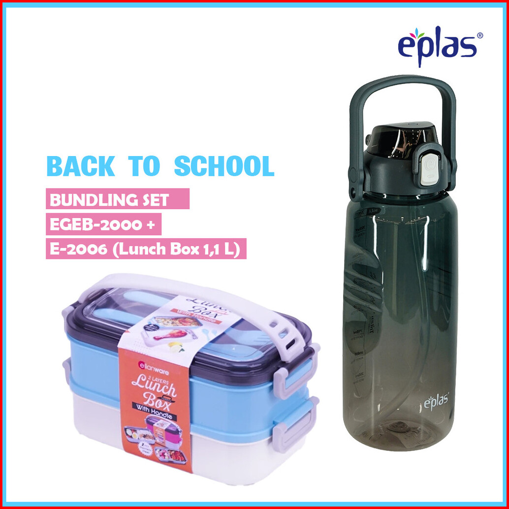 Eplas Freshpack 2in1 - Botol Minum 2000ml Kotak Makan 2 Tier Stainless Steel 1100ml Bpa Free Food Grade Egeb-2000 E-2006