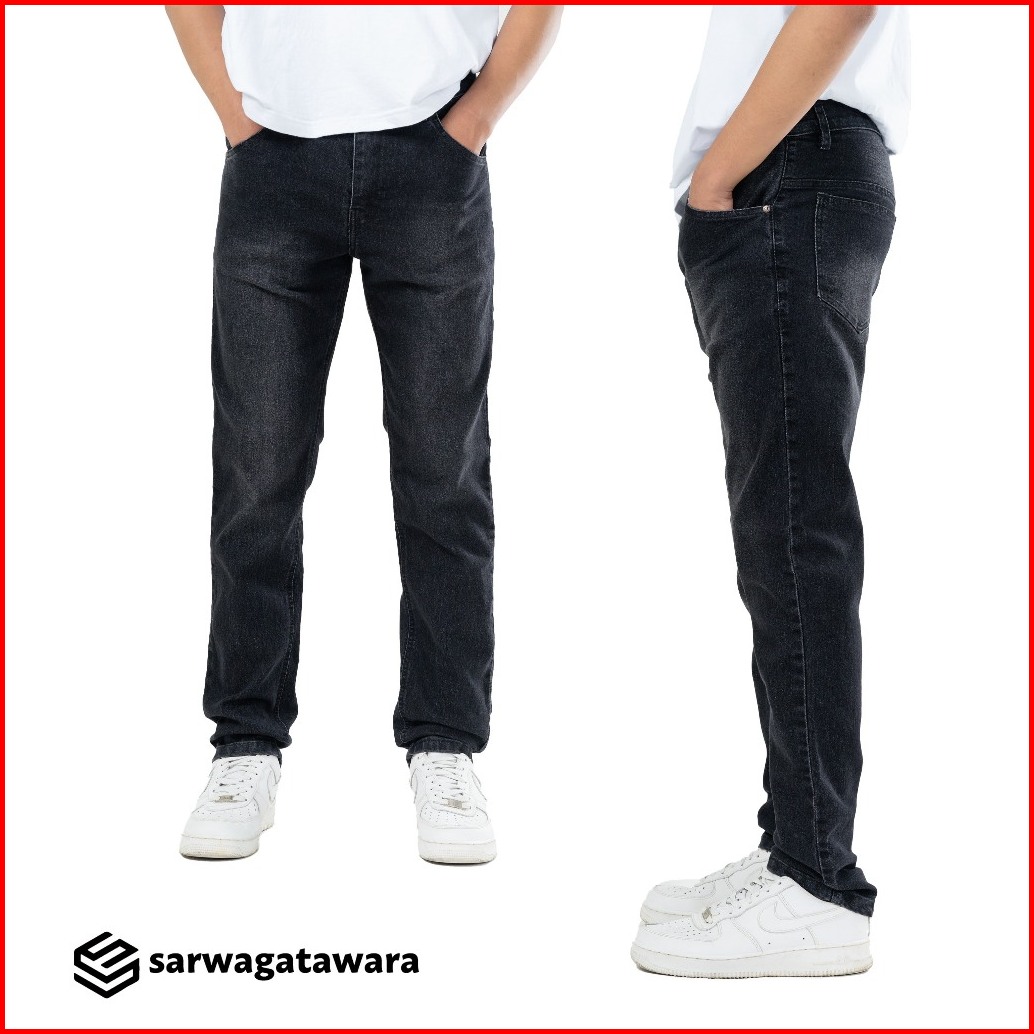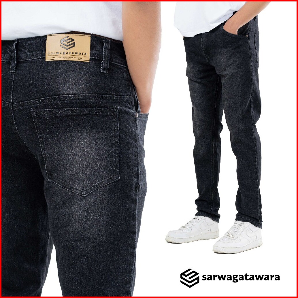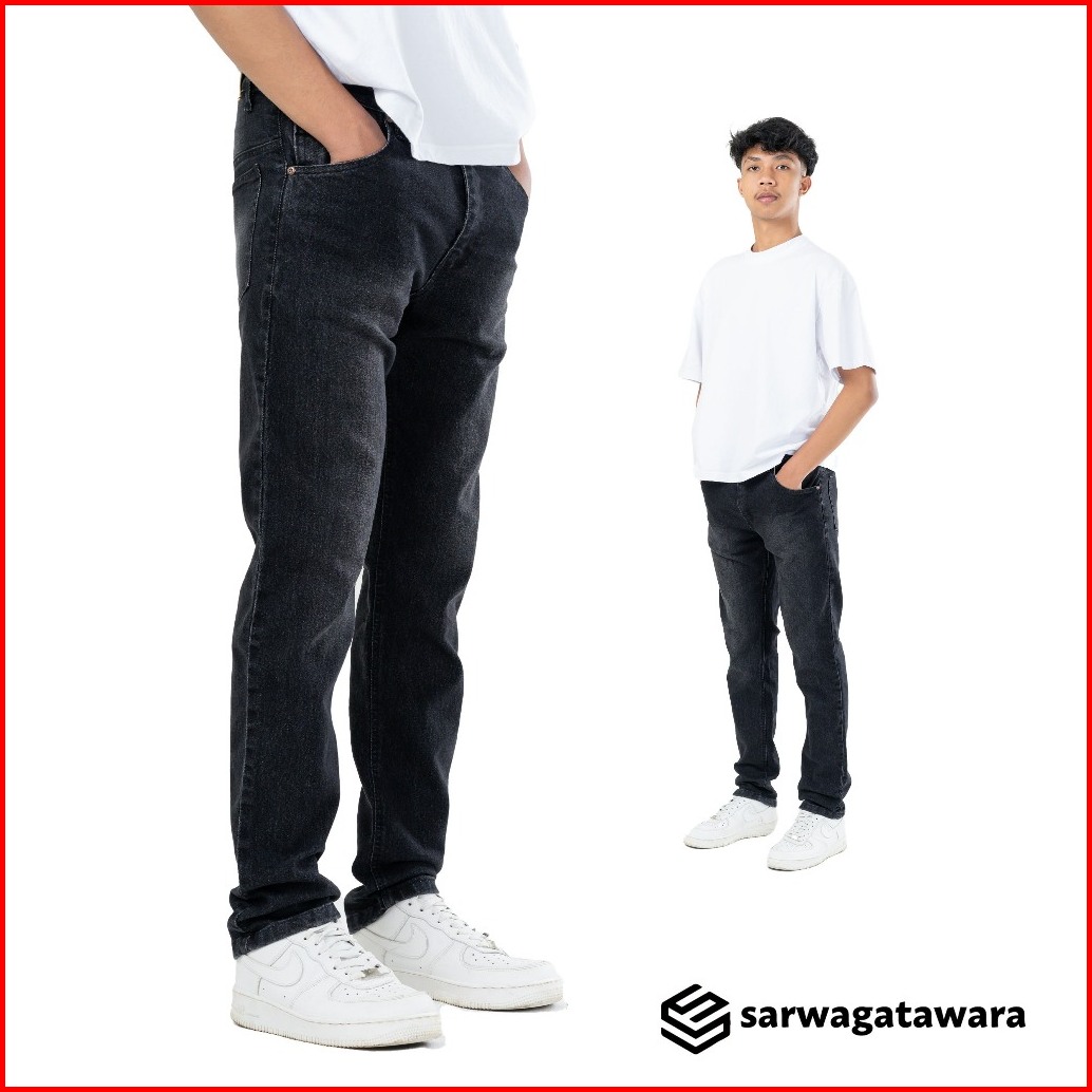 Sarwagatawara Celana Panjang Jeans Basic Pria Black Jazz Model Slimfit