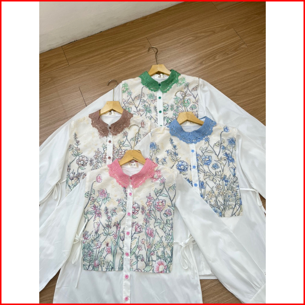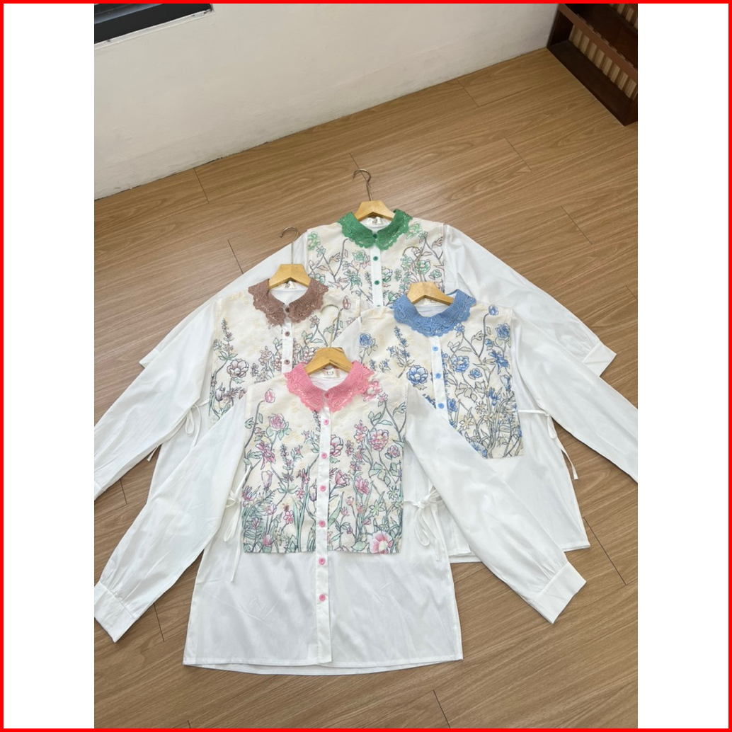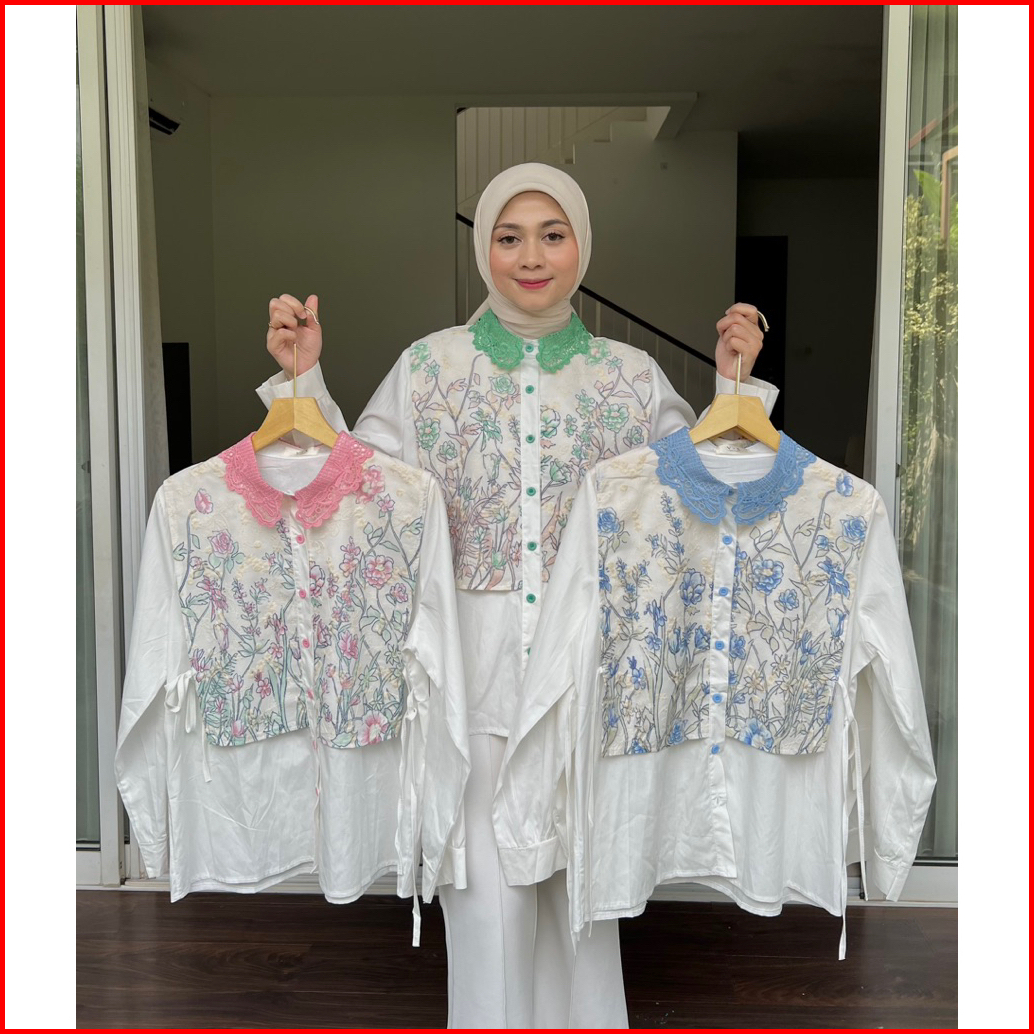Blouse Putih Bordir Floral - Atasan Wanita Kerah Brukat