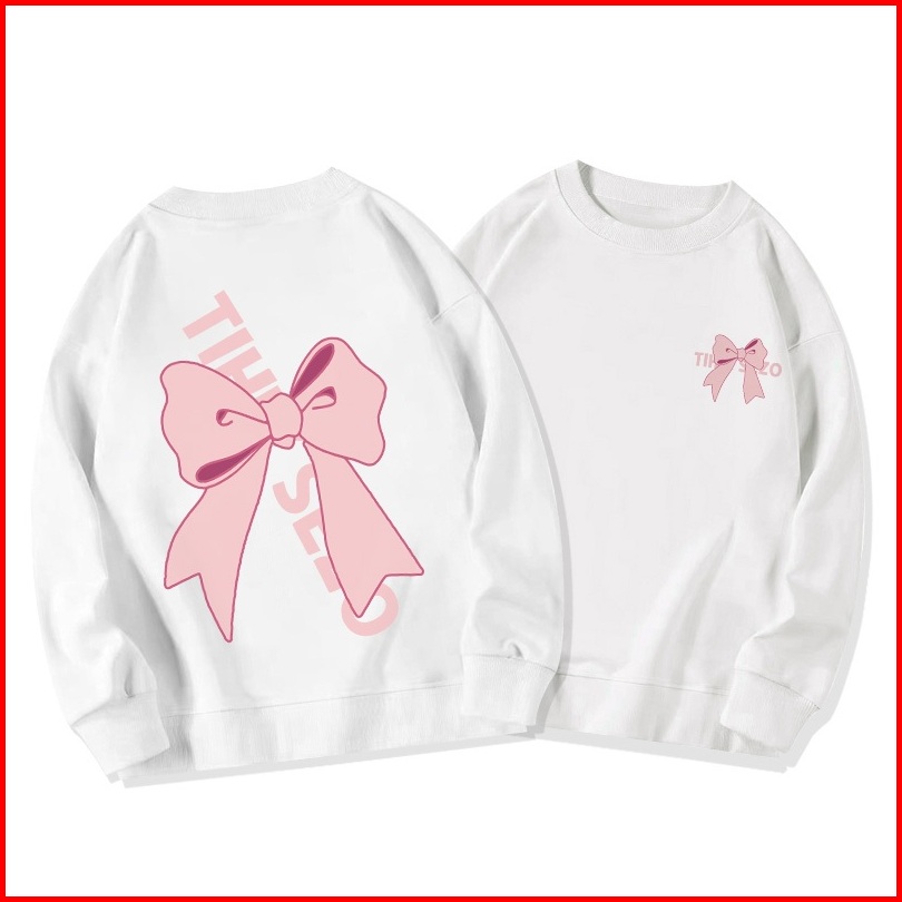 Sweater Oversize Wanita Lengan Panjang Versi Korea Cetakan Cute Pink Bow Baju Sweater Wanita Korean Style Letter Print L