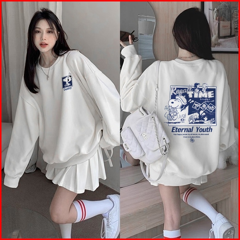 Sweater Oversize Wanita Lengan Panjang Versi Korea Cetakan Cute Cartoon Snoopy Baju Sweater Wanita Korean Style Letter P