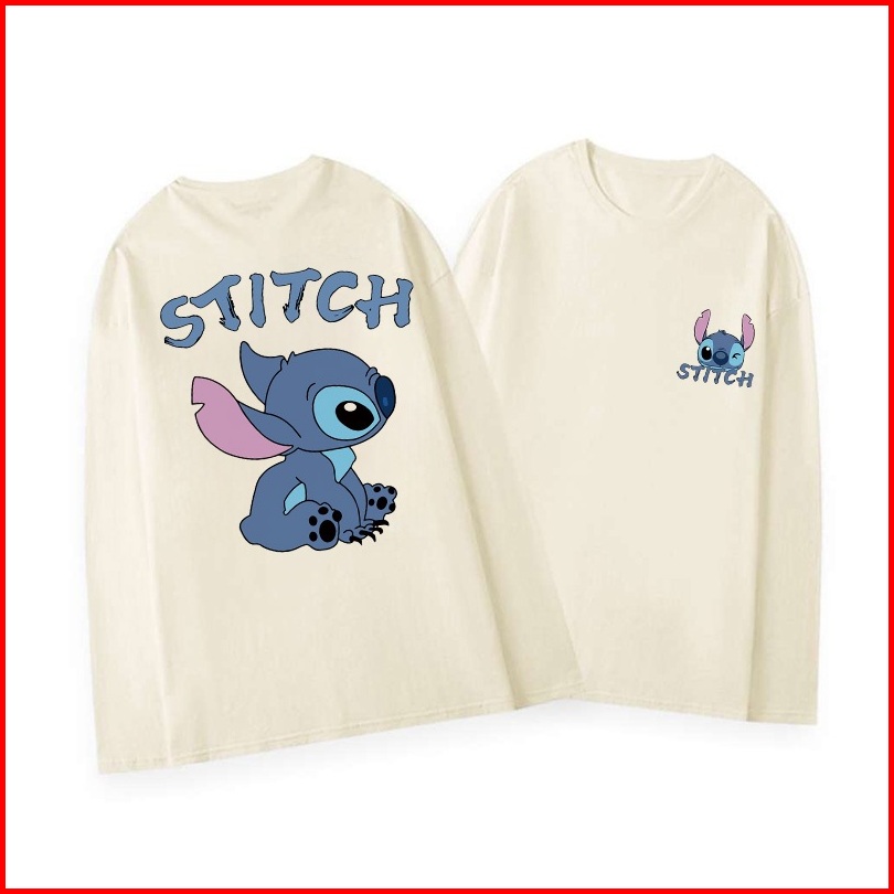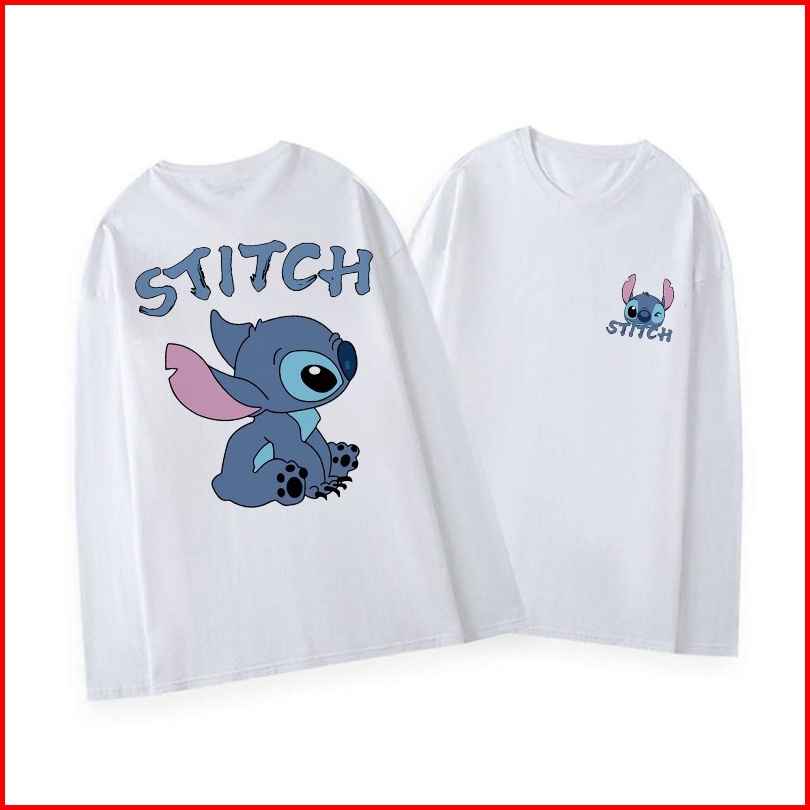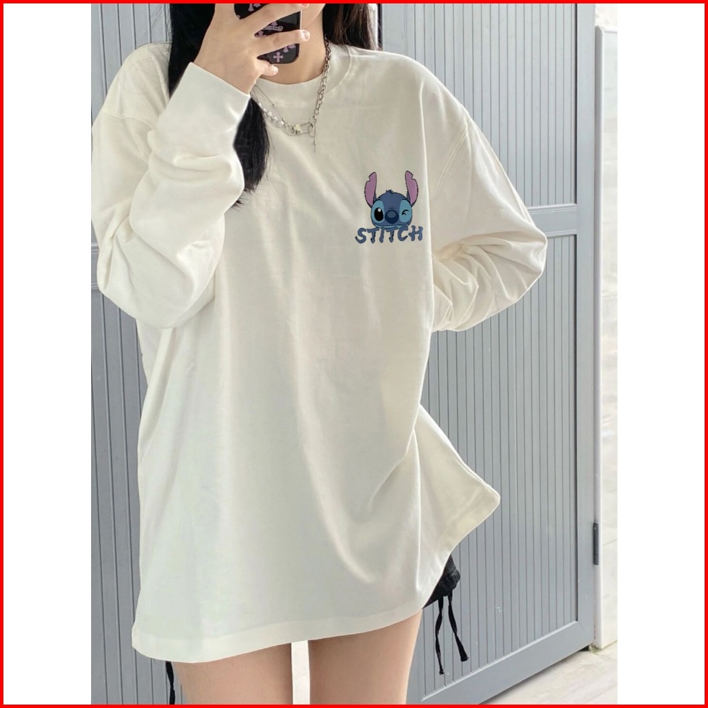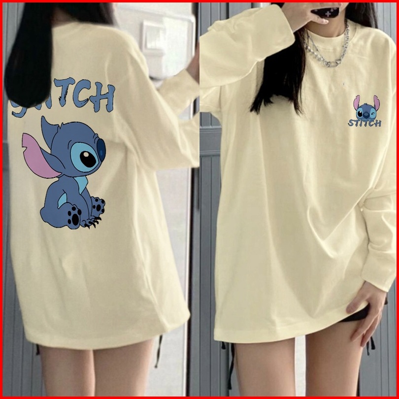Kaos Oversize Lengan Panjang Wanita Cetakan Cute Cartoon Blue Stitch Baju Kaos Lengan Panjang Wanita Terbaru Kekinian Ba