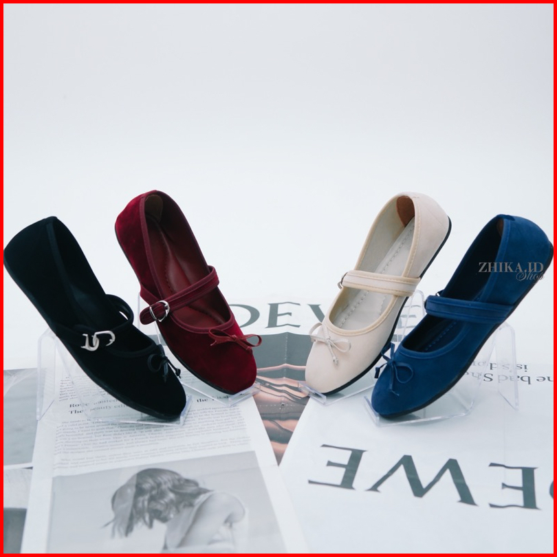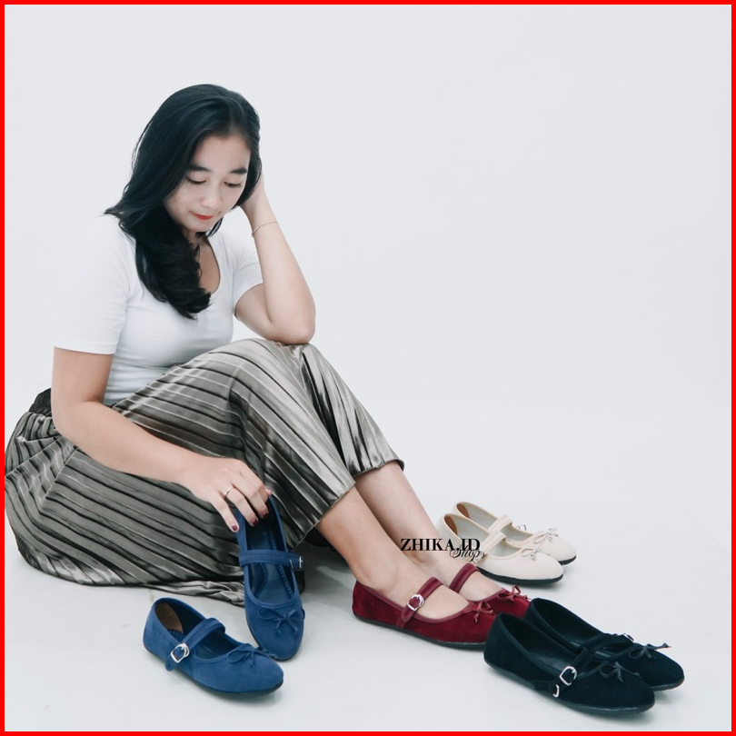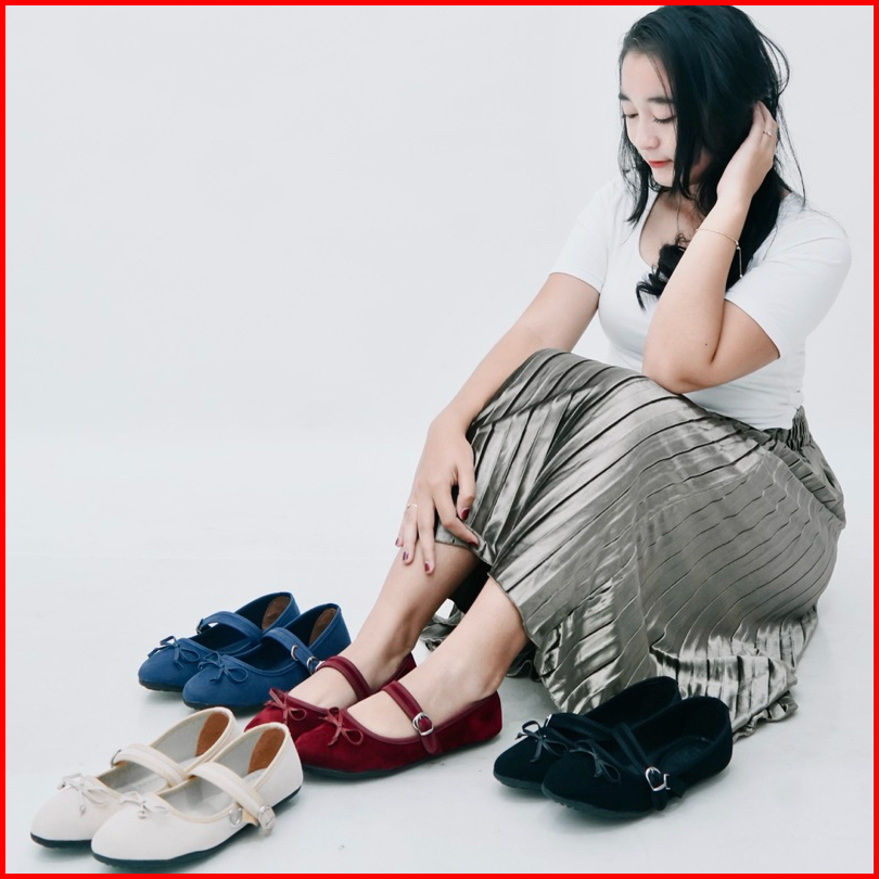 Sepatu Wanita Flatshoes Tali Pita Mary Janes Super Empuk Elegan Flatshoes Perempuan Kerja Casual