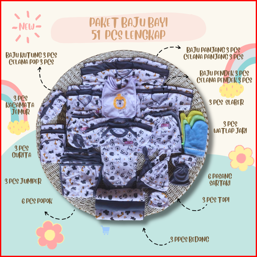 51 Pcs Paket Baju Bayi Lengkap Paket Brojol New Born Paket Lengkap Baju Bayi Baru Lahir Katun