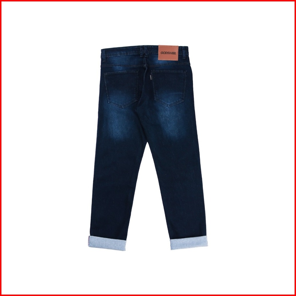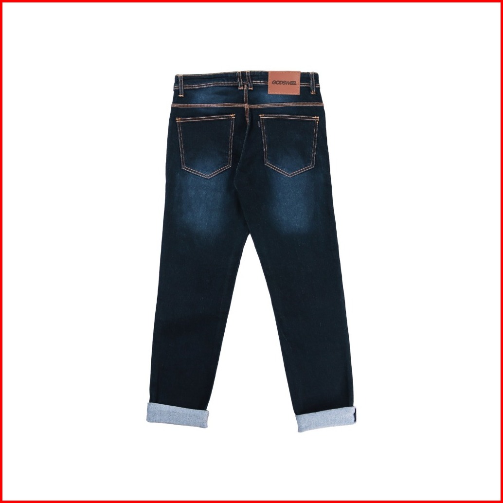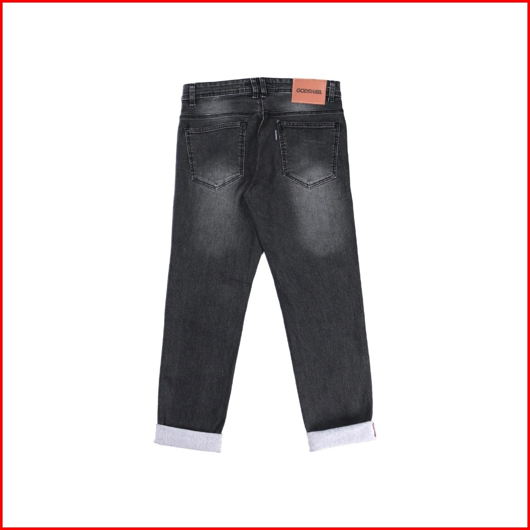 Godsweel Celana Jeans Pria Panjang Stretch Meral Blackwisker Aksen Selvedge
