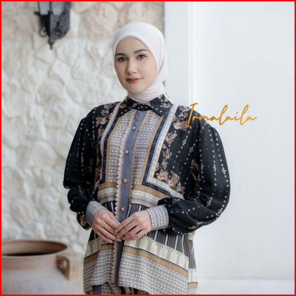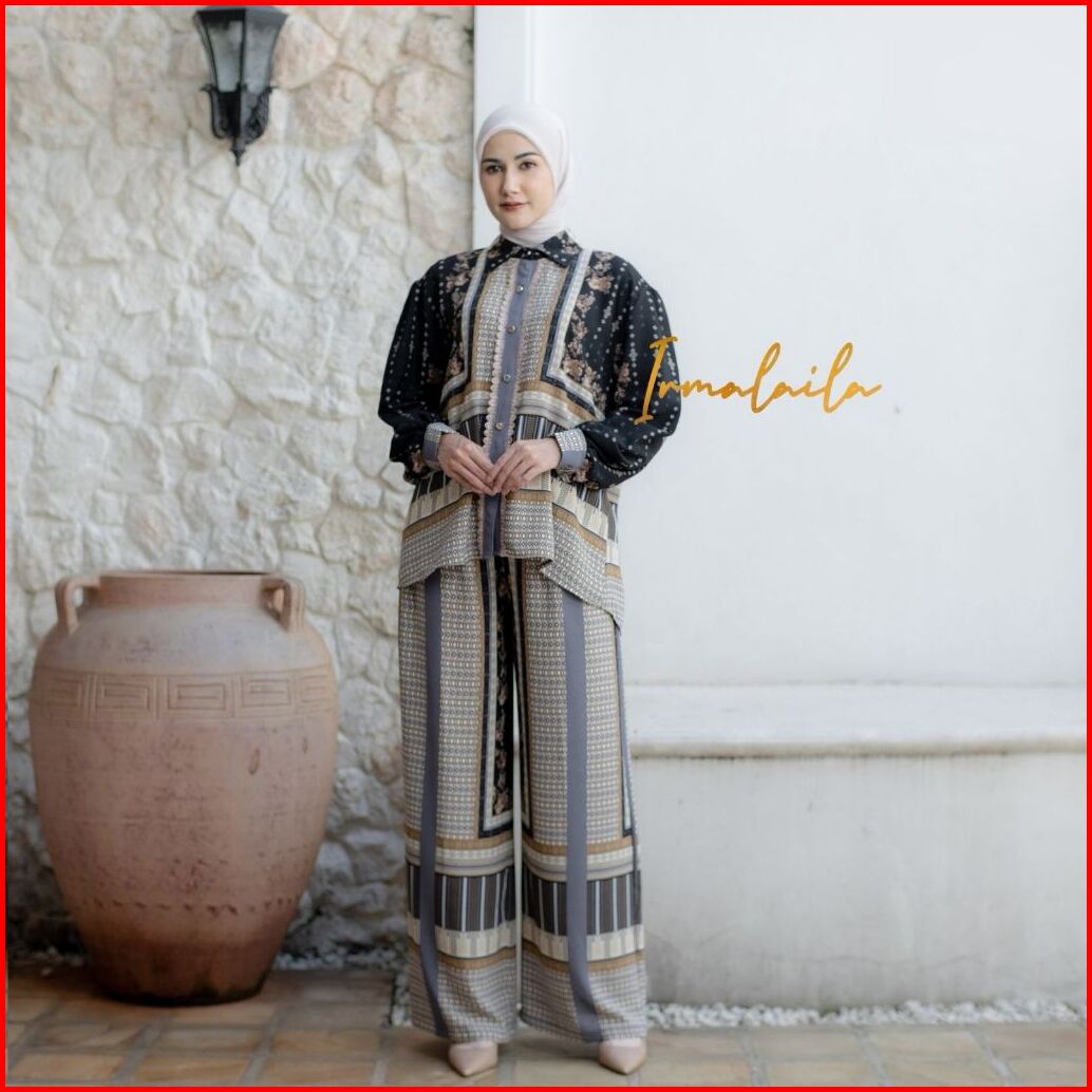 Irmalaila - Ivnia One Set Blouse Kemeja Kulot Panjang One Set Bahan Froise Motif Cantik Adem Dan Nyaman Aksen Renda