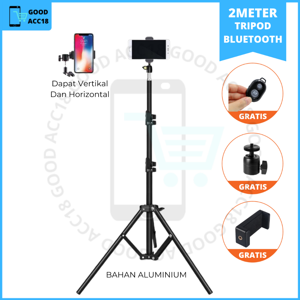 Tripod HP Kamera 2 Meter Besi Kuat Remote Bluetooth Mini Ball Holder Bisa Support Pasang Ringlight