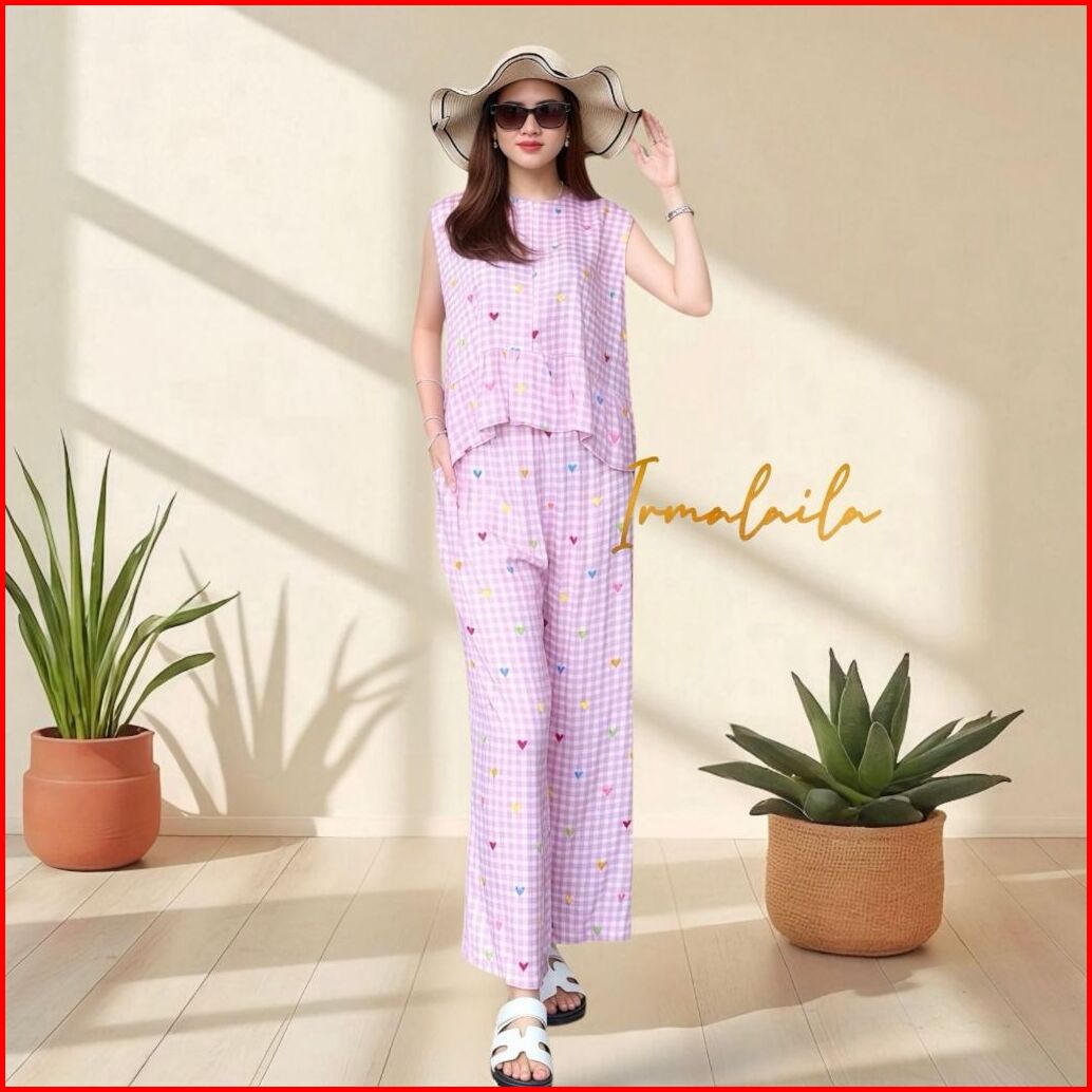 Irmalaila - Amira One Set Kutung Celana Kulot 7 8 Rayon Motif Adem Nyaman Daily Busui Friendly