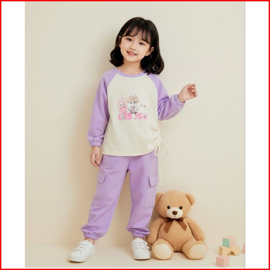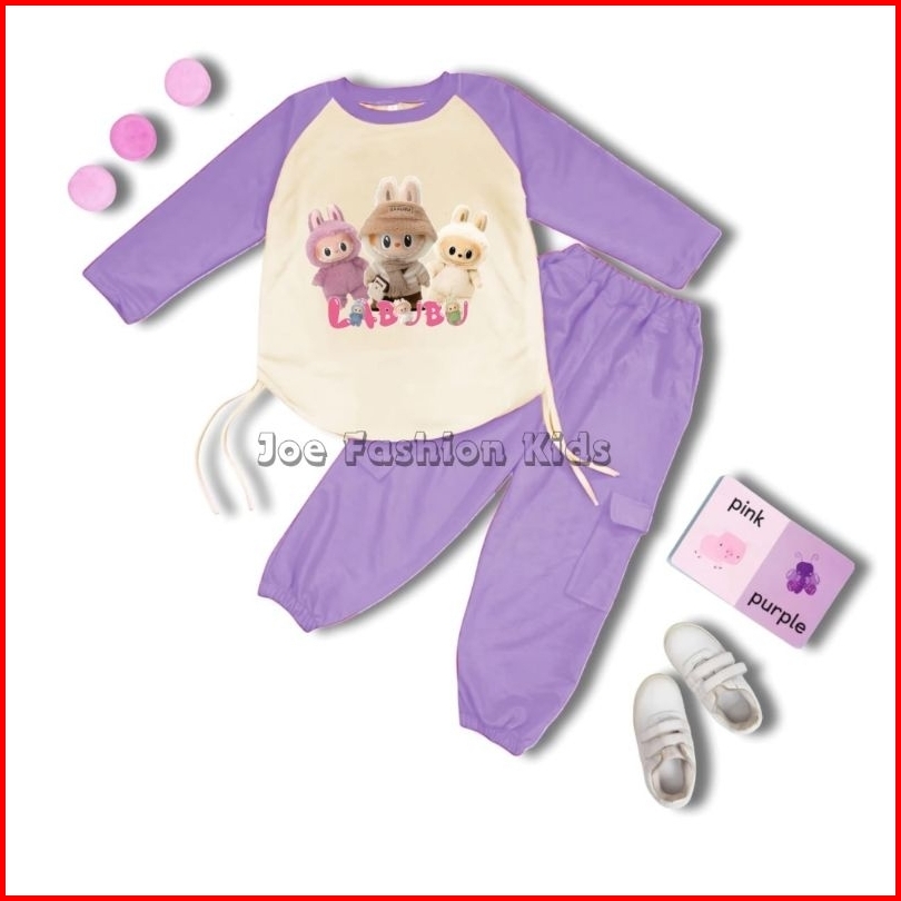 Setelan Baju Dan Celana Model Cargo Joger Anak Perempuan Usia 1-10 Tahun