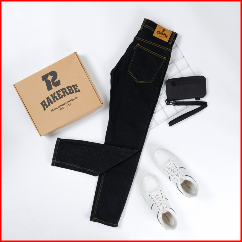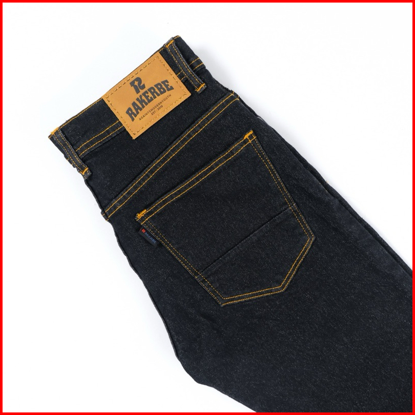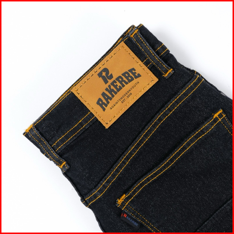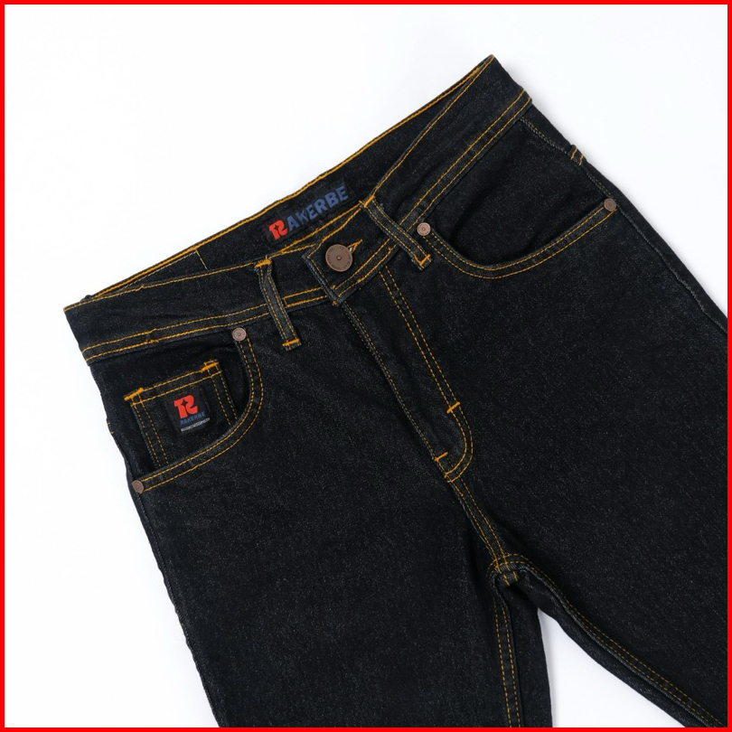 Rakerbe Celana Jeans Pria Cowok Slimfit Stretch Panjang Meral Aksen Selvedge Black Indigo