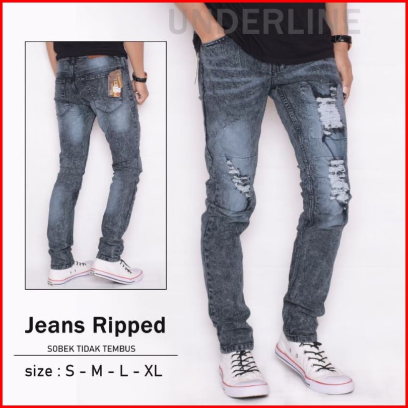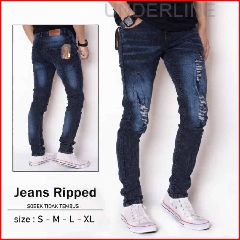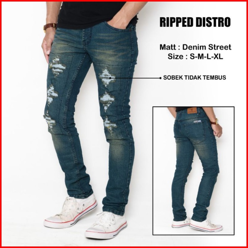Dreeland Celana Jeans Bikers Pria Panjang Sobek Lutut Slimfit Denim Ripped Model Pensil