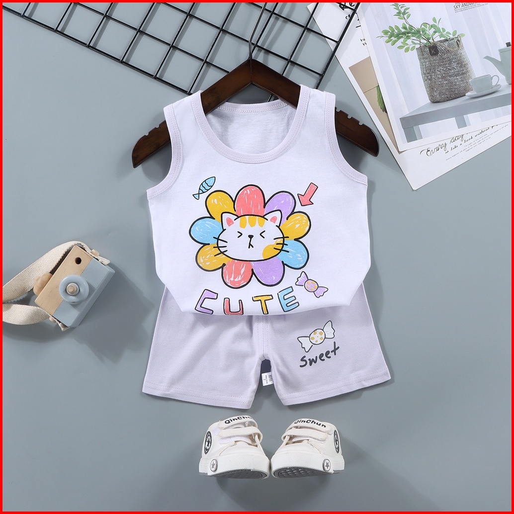 Niuniu Baju Anak Lengan Pendek Perempuan Baju Pendek Bayi Laki Laki Baju Bayi Baju Anak Kecil Setelan Anak Stelan Bayi B