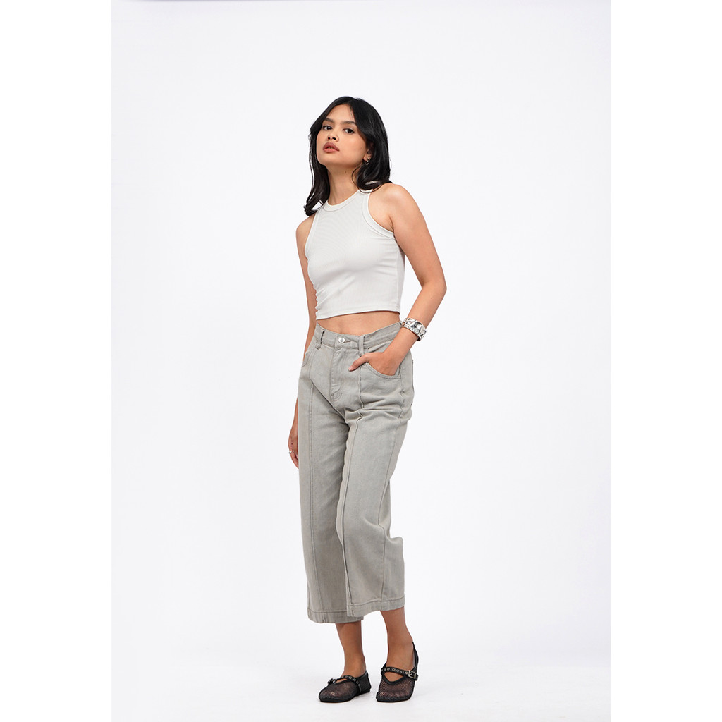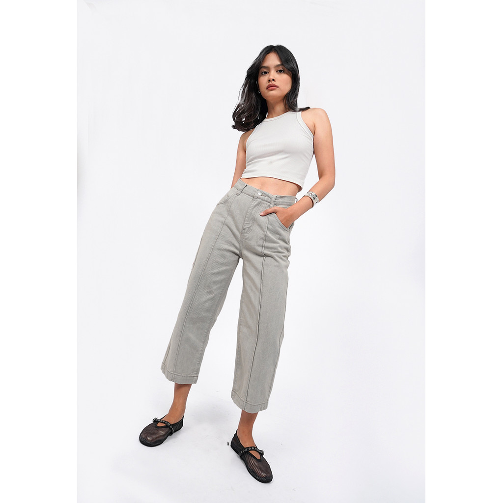 COLORBOX Denim Cullotes with Crease Detail Lt. Grey