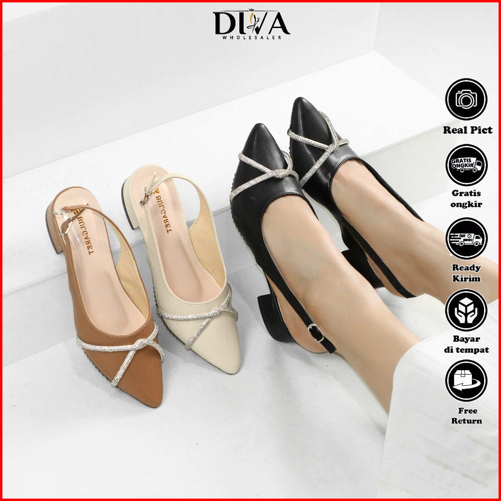 Sandal Wanita Heels Mules Hak 3cm Elegan Kekinian Dn 08