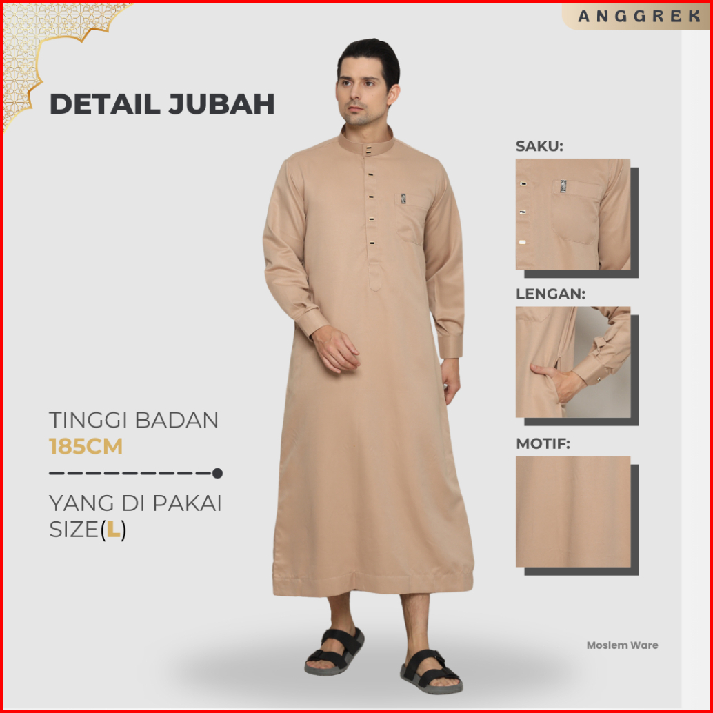 Anggrek - Gamis Maherzain Jubah Pria Muslim Lengan Manset Premium Gamis Cowok Reguler Katun Poplin