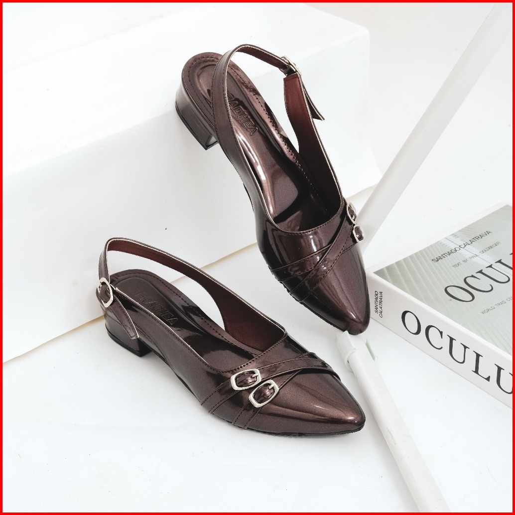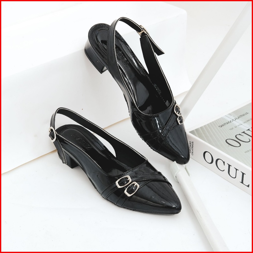 Sepatu Sandal High Heels Mules Wanita Slop Tali Belakang Hak 3 Cm Elegan Kekinian Terbaru Ib 25