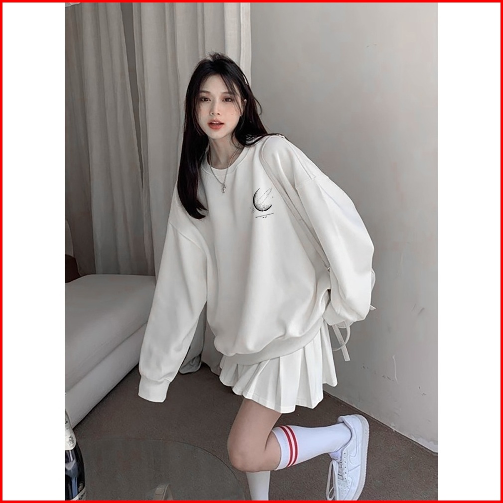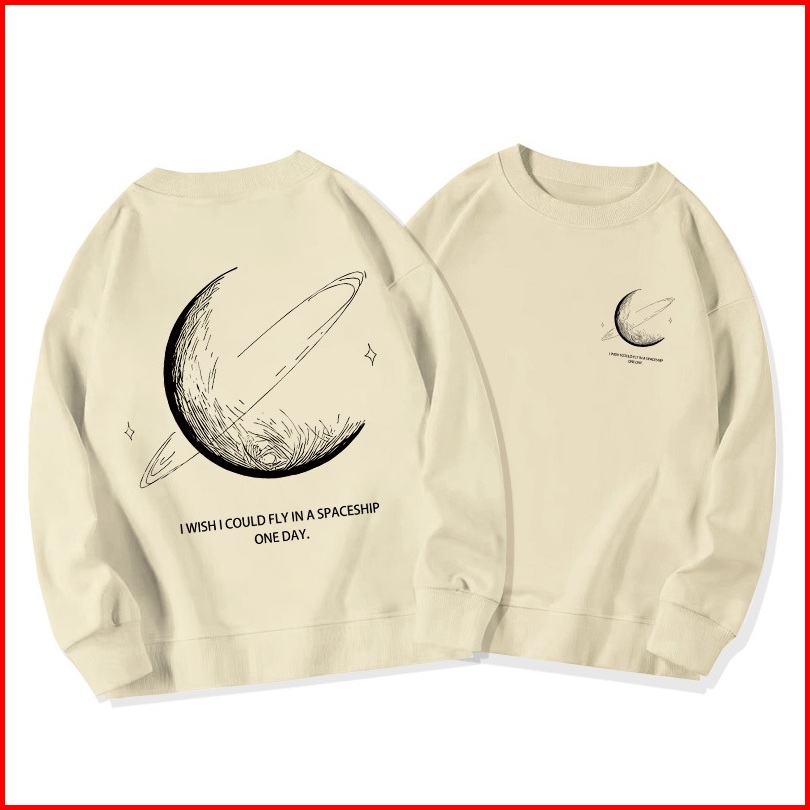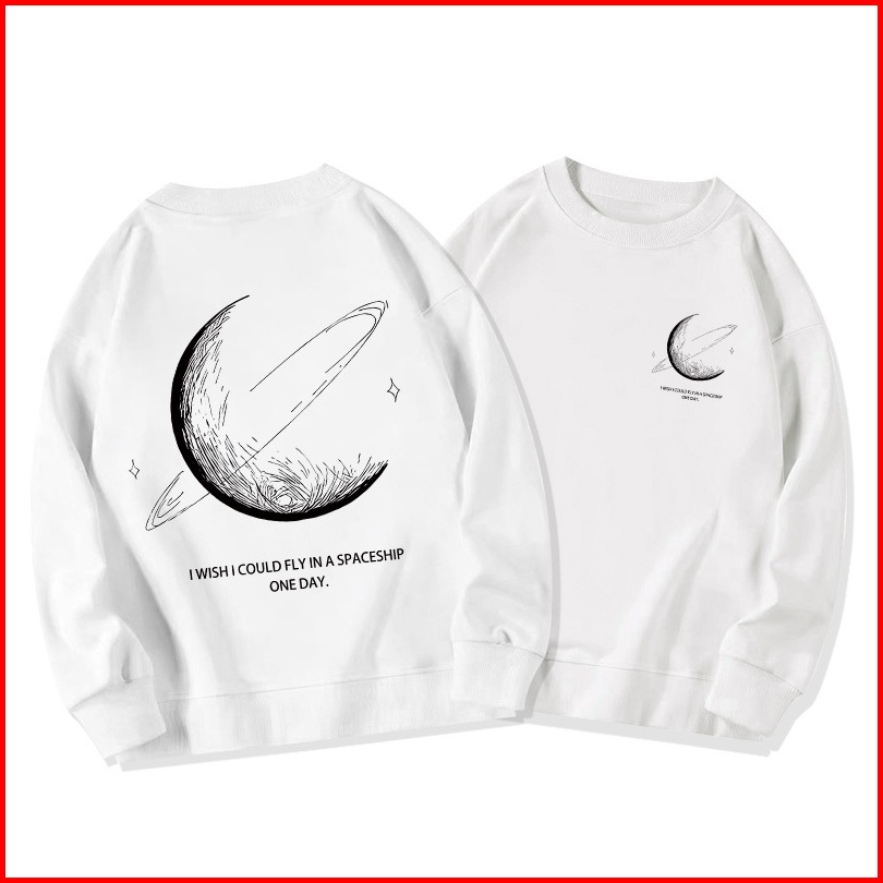 Sweater Oversize Wanita Lengan Panjang Versi Korea Cetakan Planet Baju Sweater Wanita Korean Style Letter Print Loose Sw