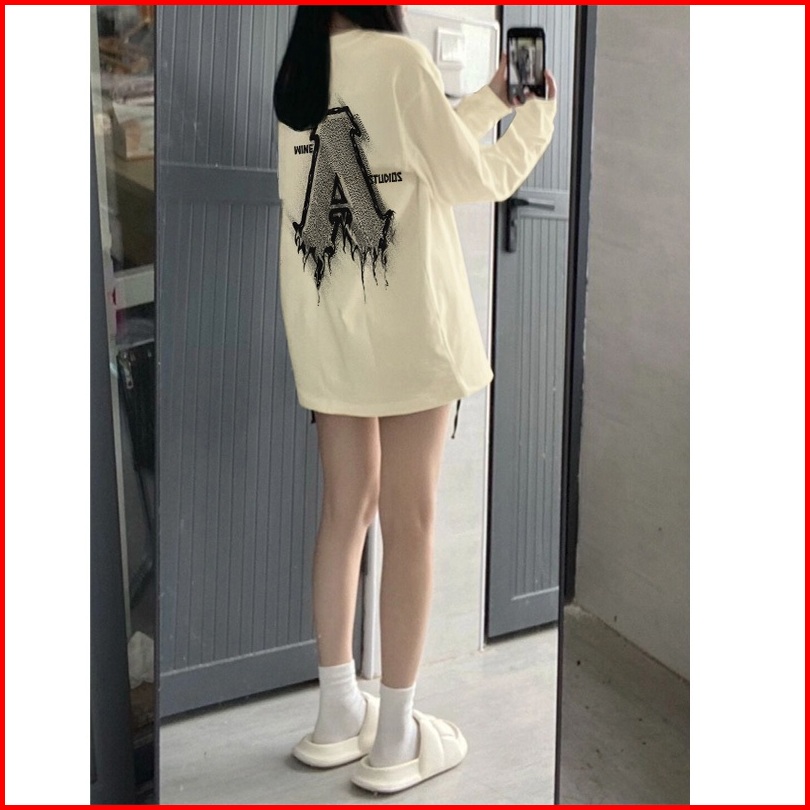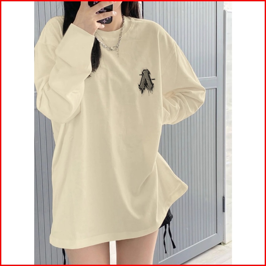 Kaos Oversize Lengan Panjang Wanita Cetakan Retro Letter A Baju Kaos Lengan Panjang Wanita Terbaru Kekinian Baju Kaos