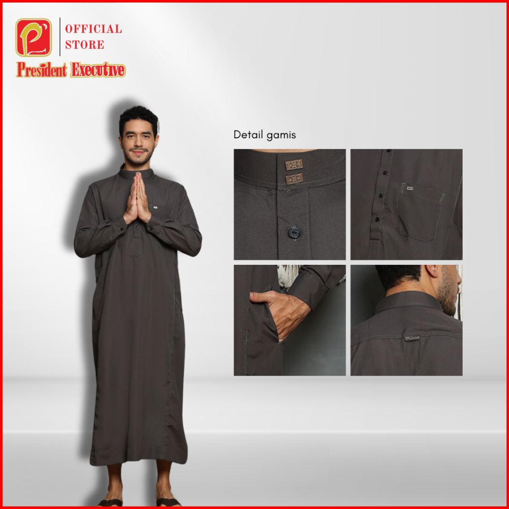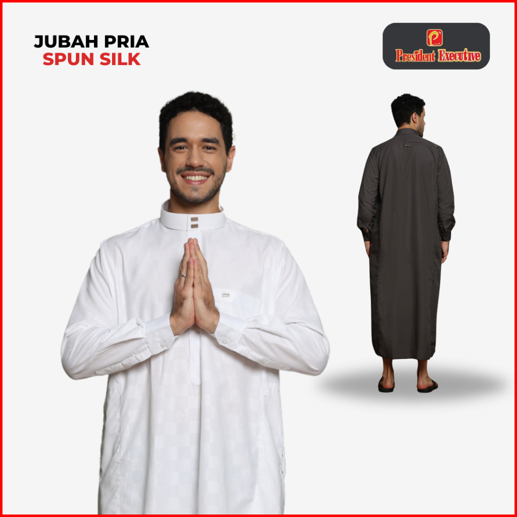 President Executive - Gamis Pria Jubah Laki Laki Polos Lengan Panjang Slimfit Manset Serie Spun Silk