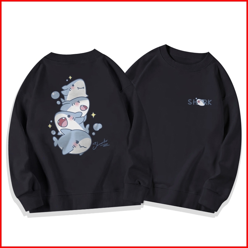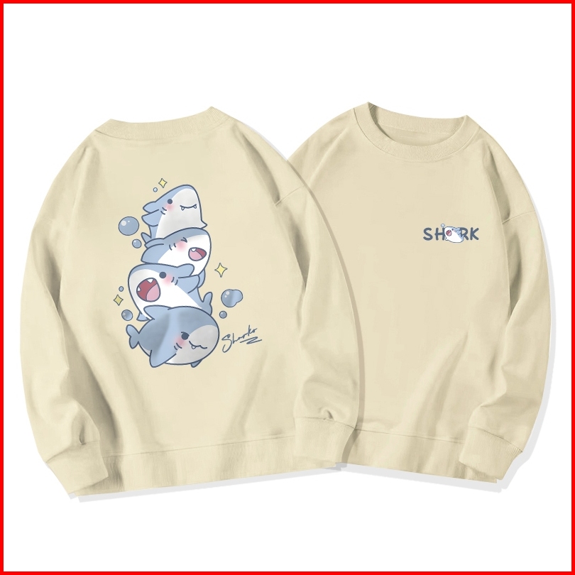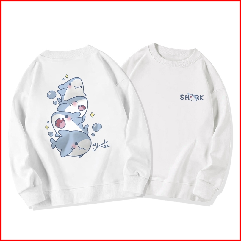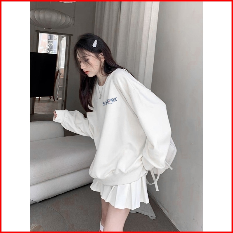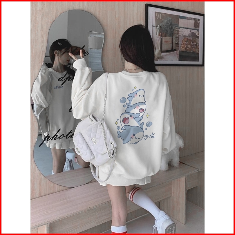 Sweater Oversize Wanita Lengan Panjang Versi Korea Cetakan Kartun Bayi Hiu Yang Lucu Baju Sweater Wanita Korean Style Le