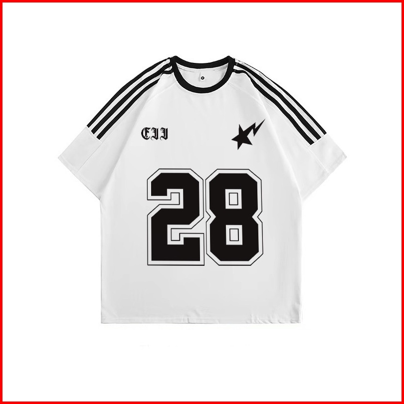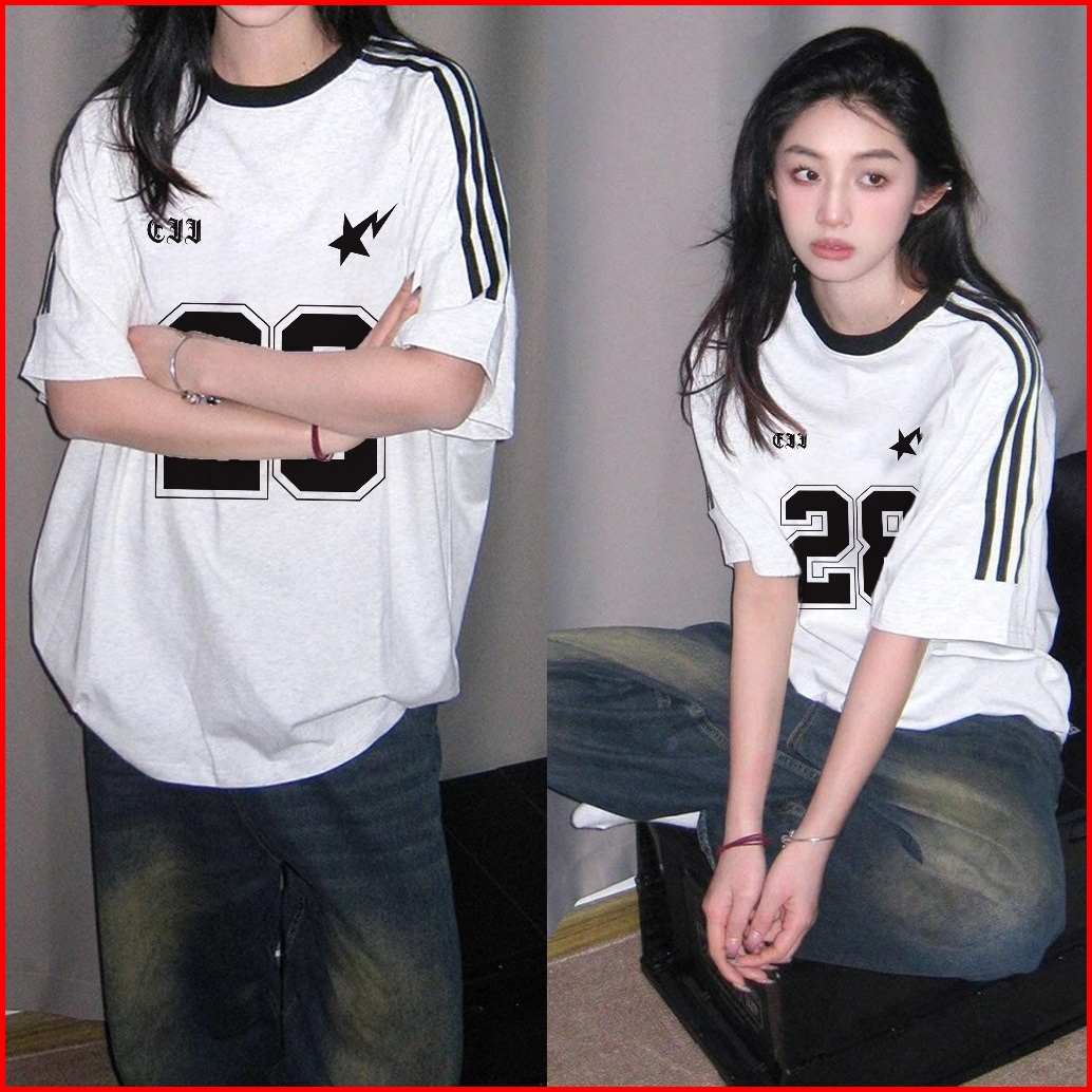 Baju Wanita Putih Black Kaos Premium Oversize Kaos Tiga Garis Dan Number 28 Atasan Wanita Kekinian Korean Style Atasan W