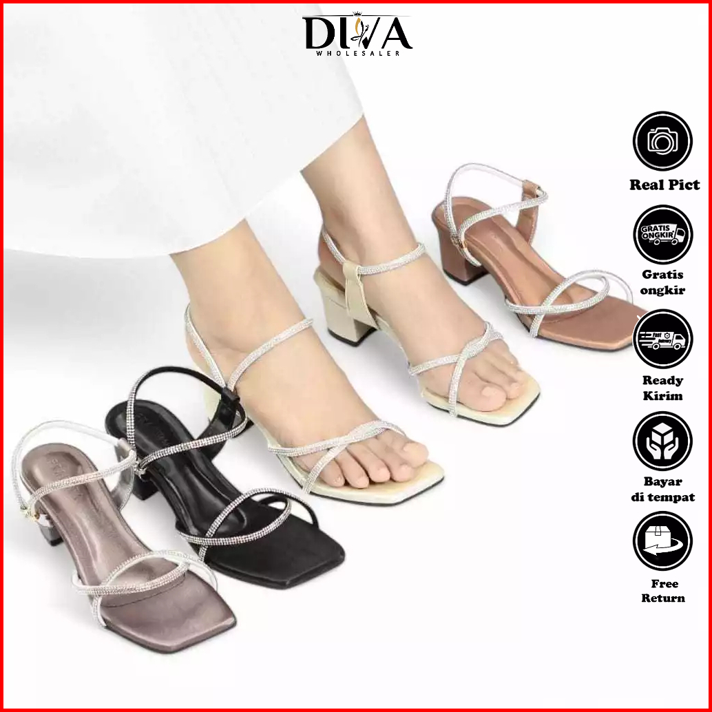 Sandal Moana Wanita High Heels Tali Wanita Kristal Bv 15