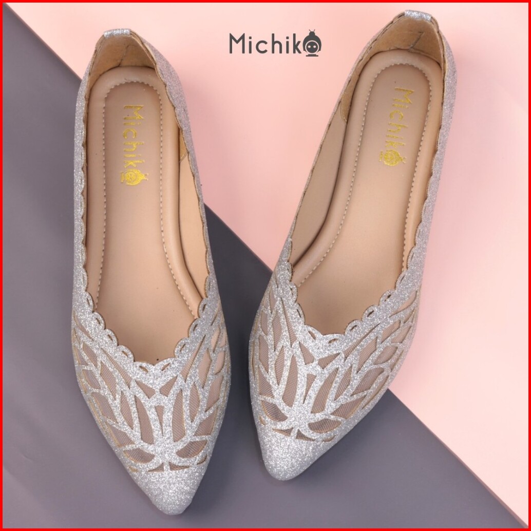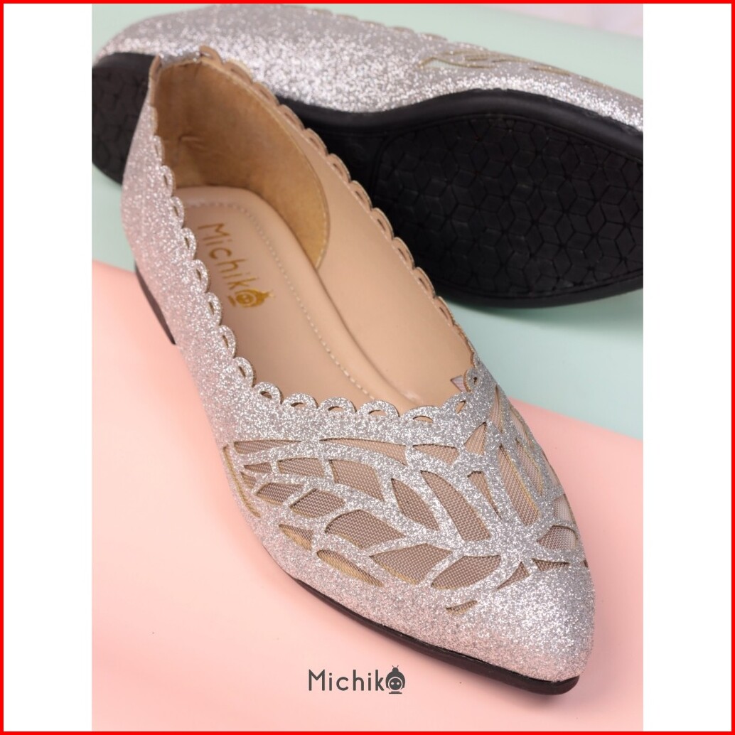 Michiko - Sepatu Pesta Wanita Flatshoes Motif Daun