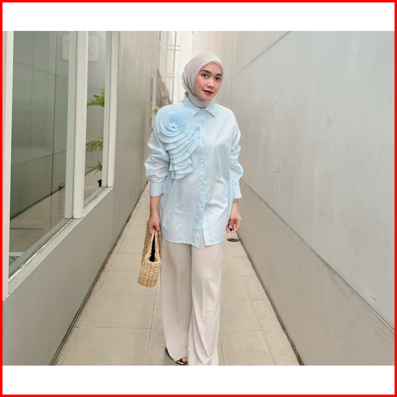 Atasan Katun Wanita Aksen Bunga Timbul - Kemeja Import