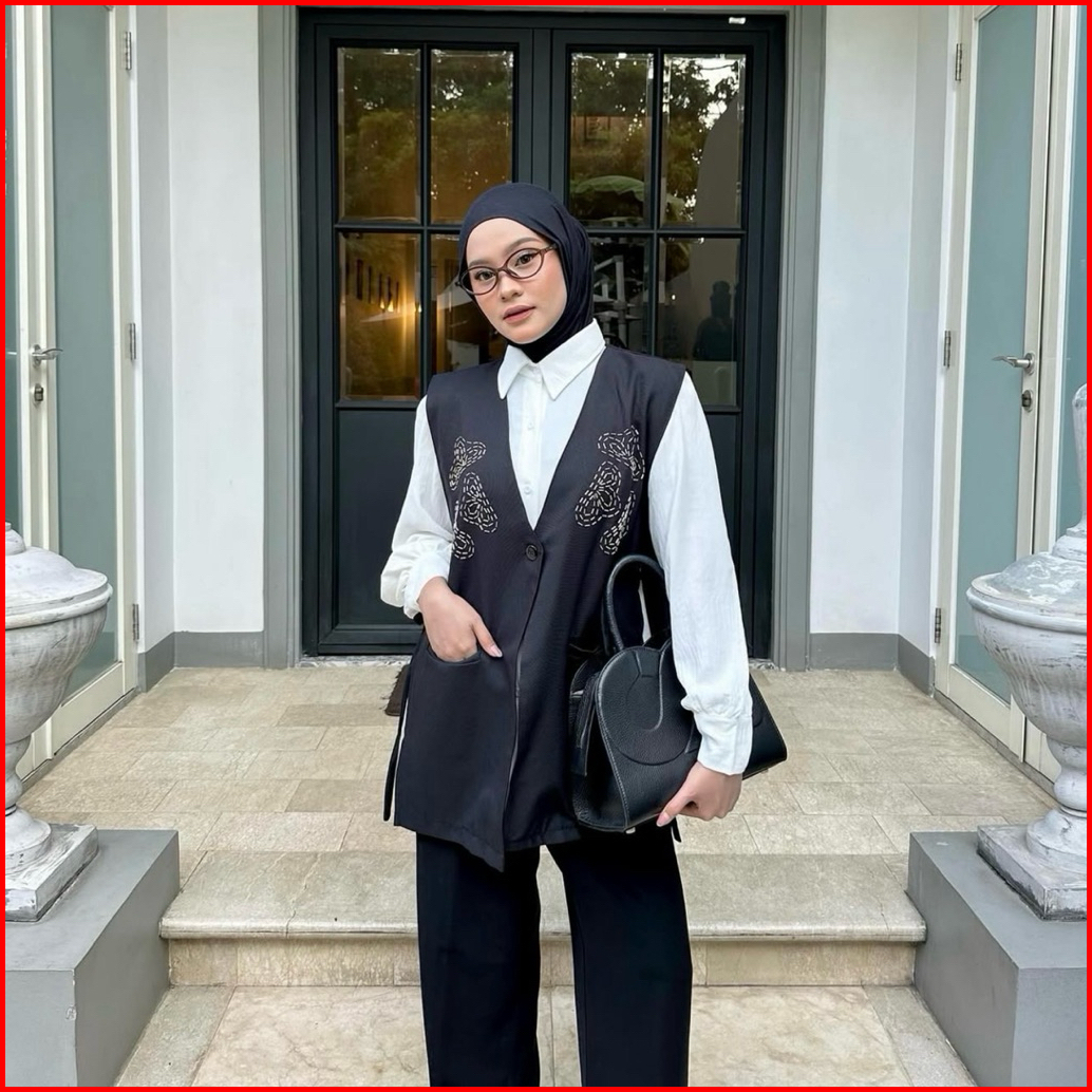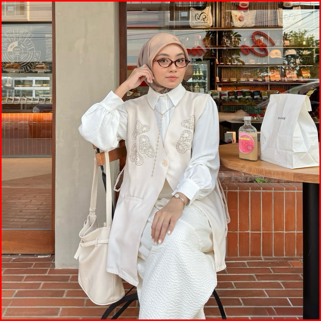 One Set Kemeja Outer Vest Lepas Pasang